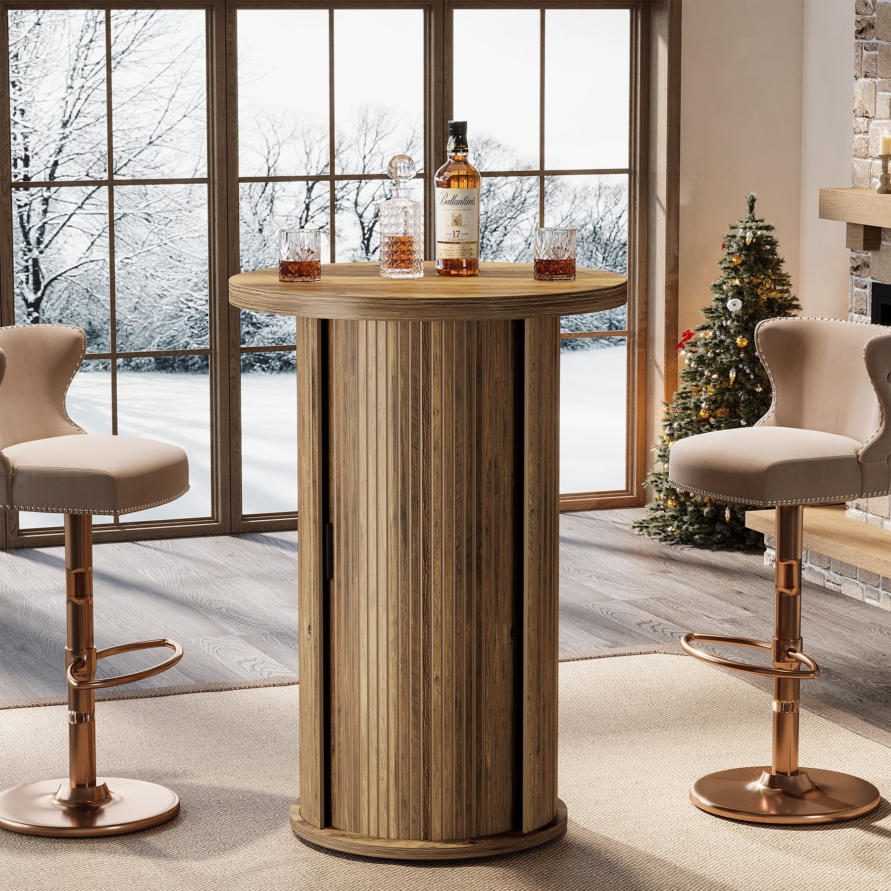 Indoor Round Bar Table with Faux Woodgrain Tabletop - Brown