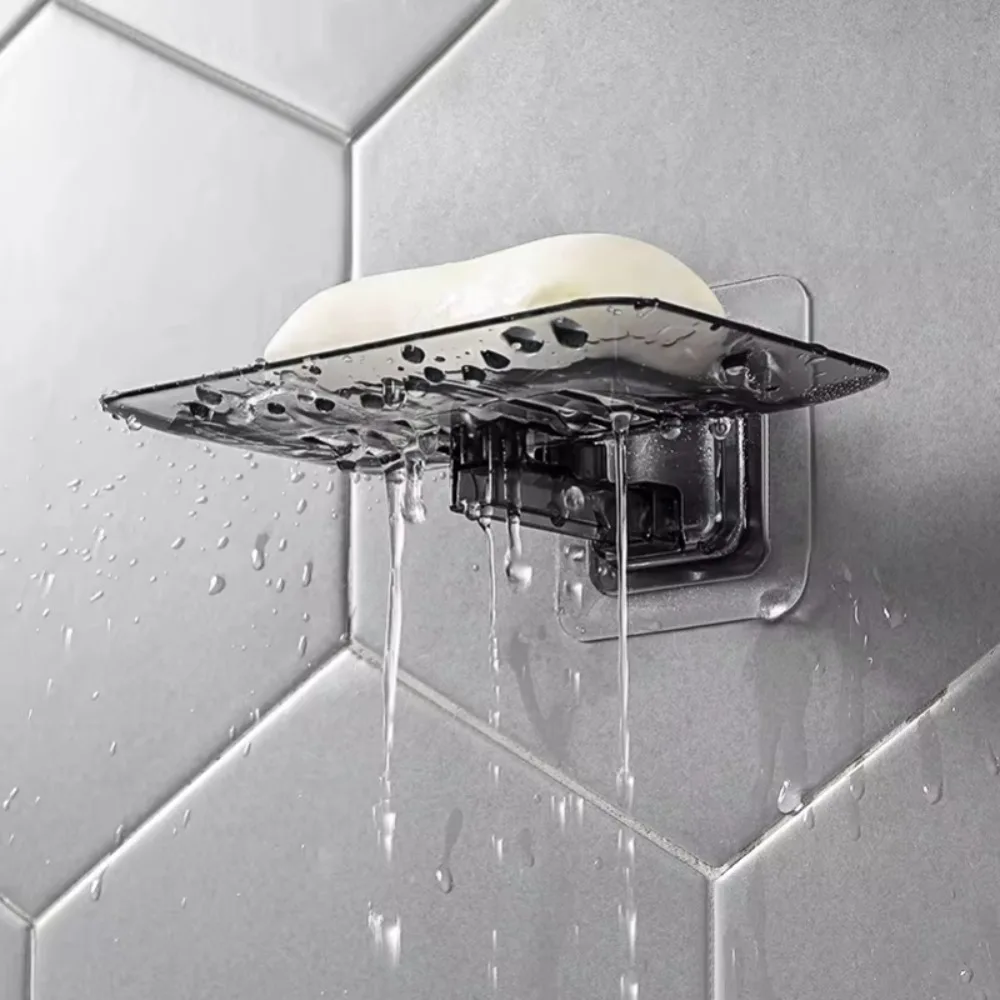 Self Adhesive Double Layer Soap Rack No Drilling Wall Mounted Soap Sponge Holder Bathroom Dishes Accessories black