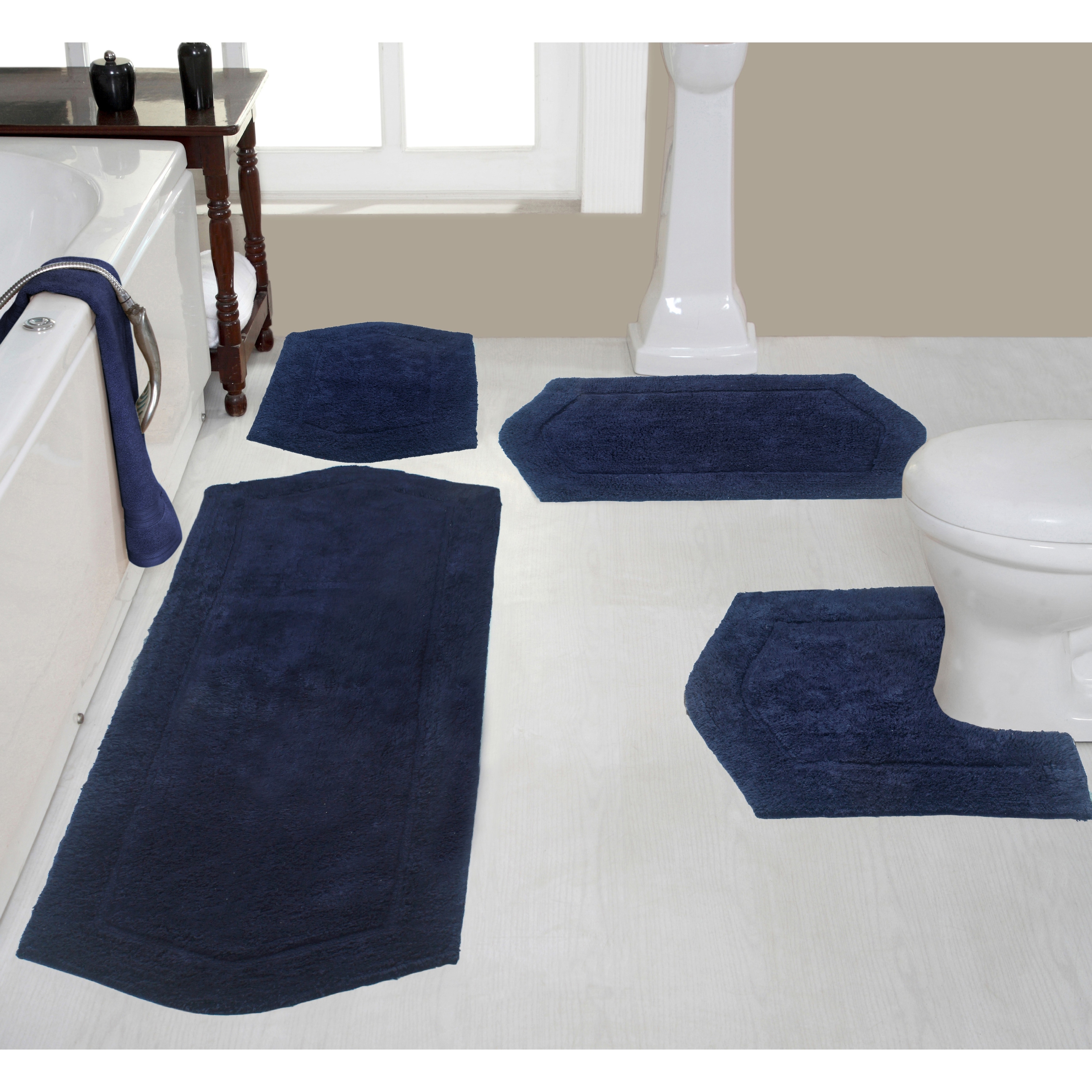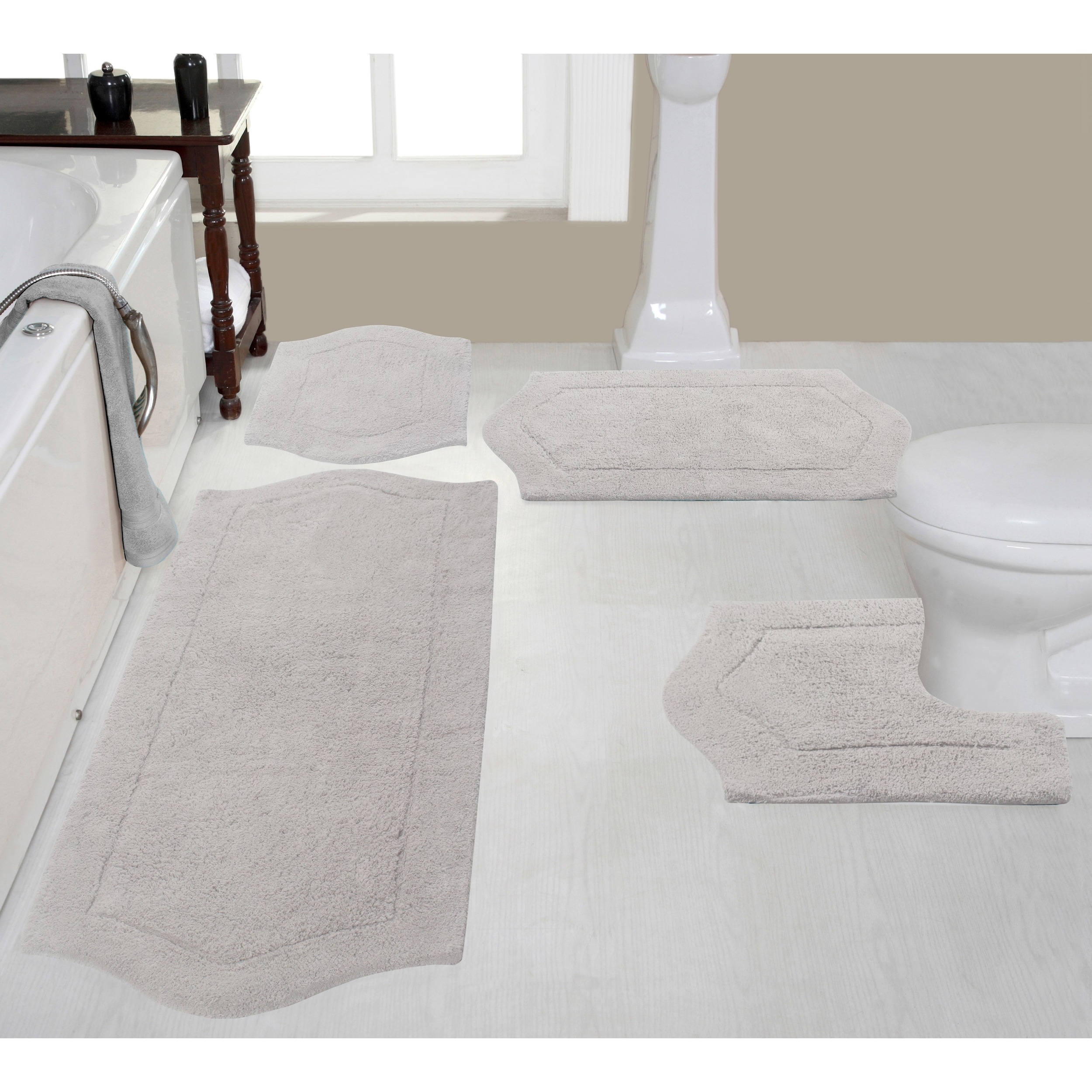 Waterford Collection 100% Cotton Non-Slip Bathroom Rug Set, Machine Washable Bath Rug, 4 Piece Bath Mat Set with Runner