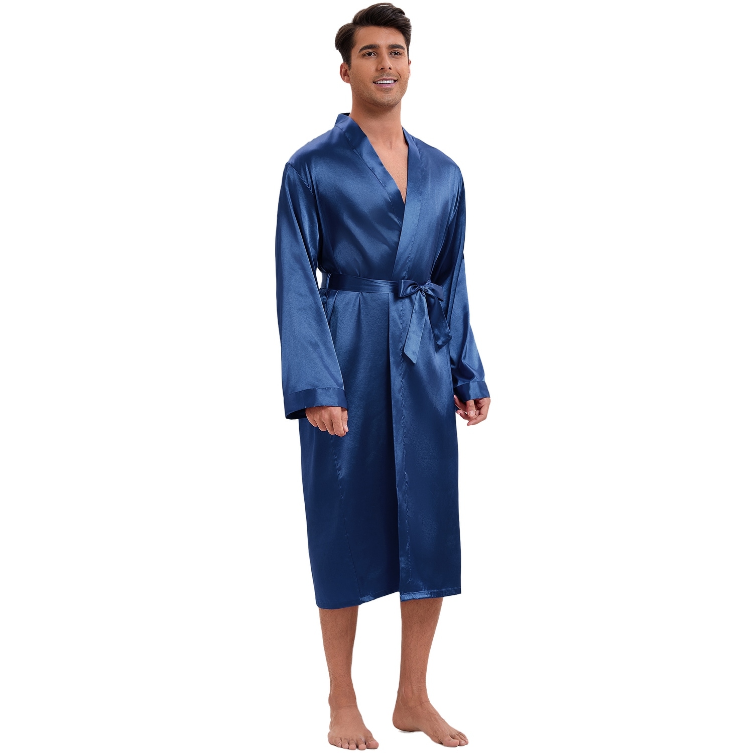 Satin Robe for Men's Long Sleeve Kimono Bathrobe Sleepwear with Shorts Set