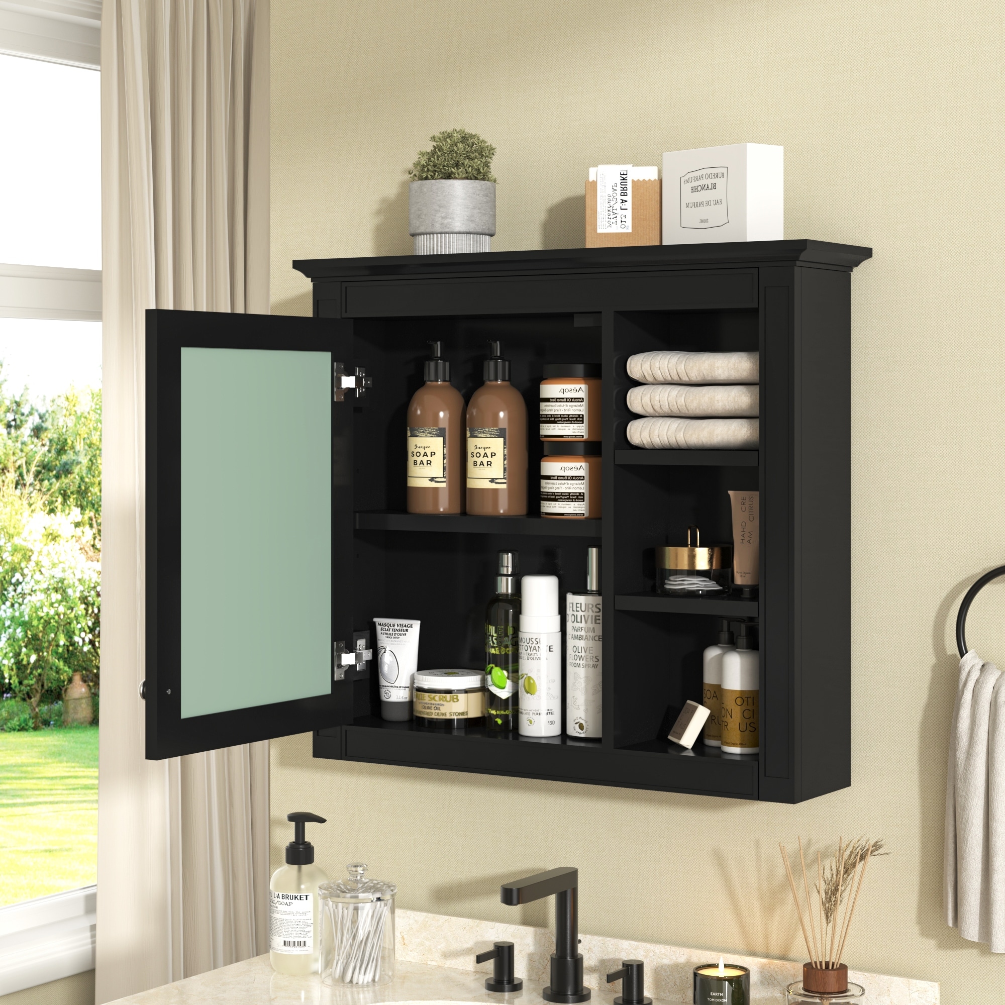 Juno 25.7" H x 15.7" W Narrow Mirror Medicine Cabinet, One door with Three interior Shelves for Bathroom, Kitchen Black