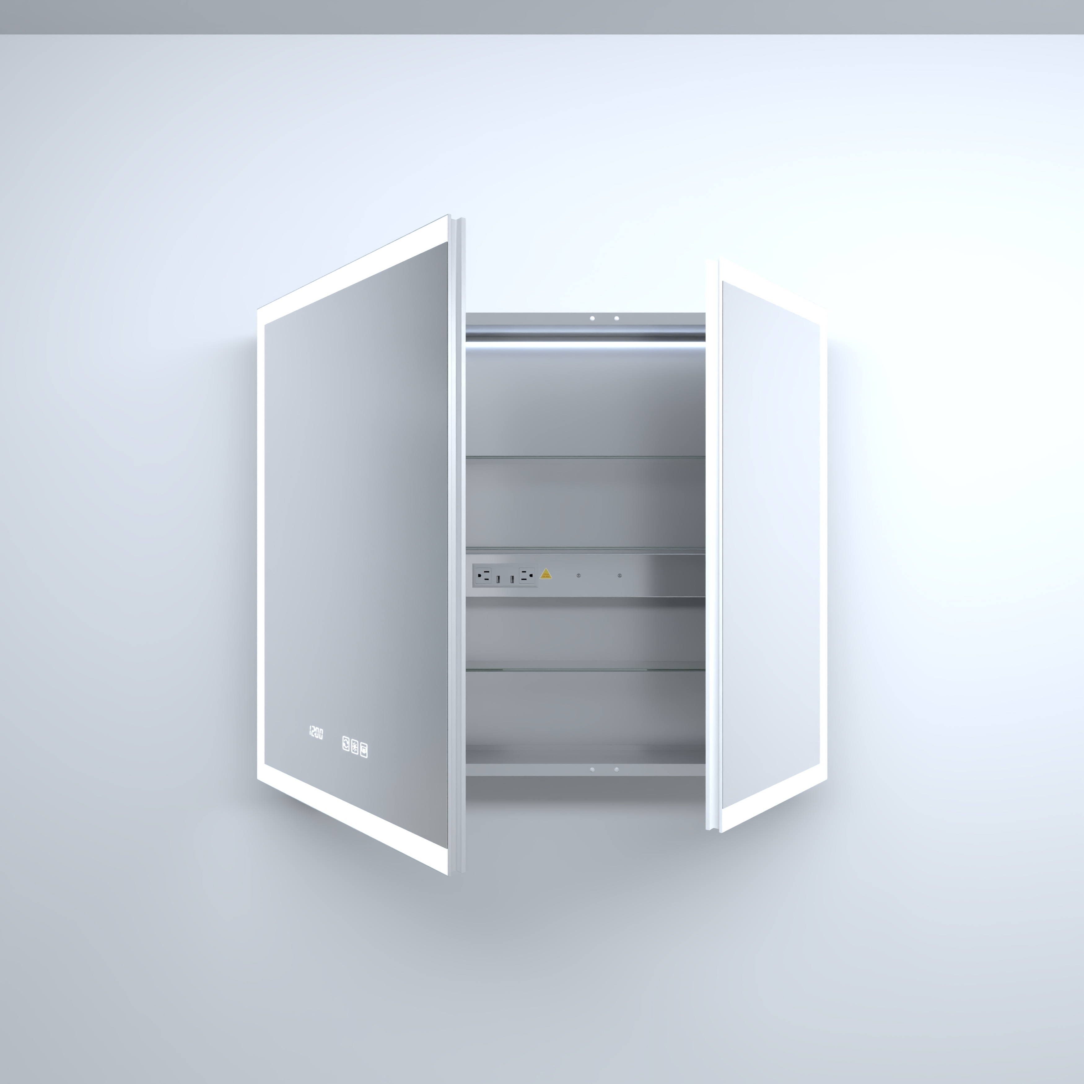 Mirror Wall Cabinet with 6 Open Shelves