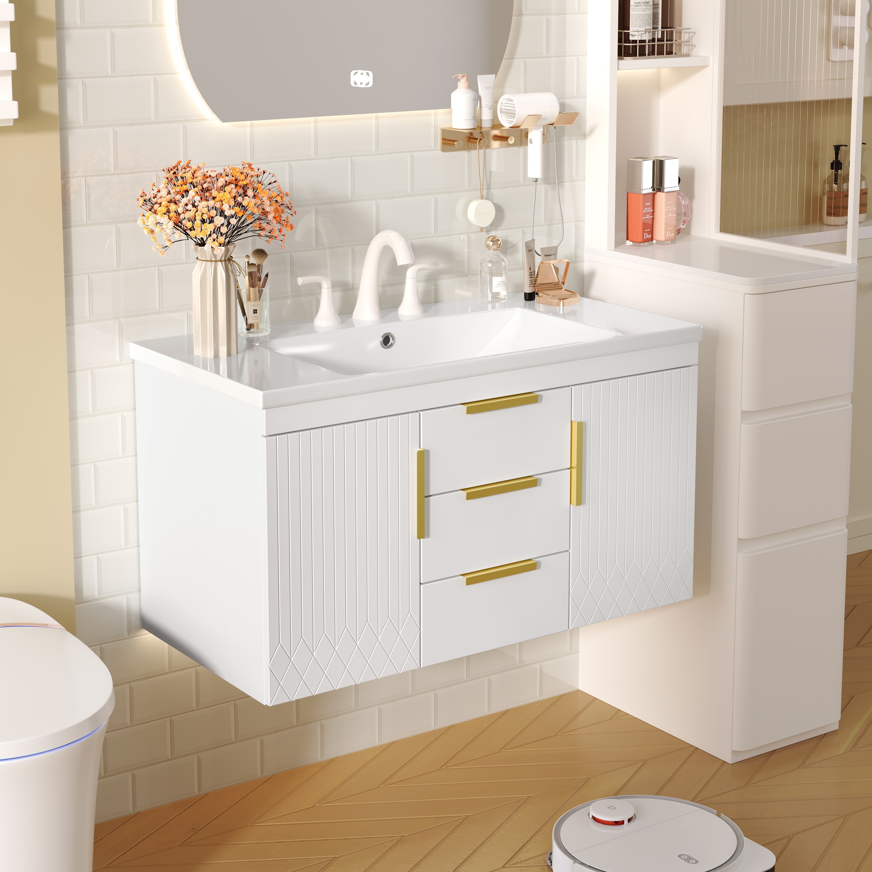 MEDUNJESS Bathroom Side Cabinet, Float Mounting Design
