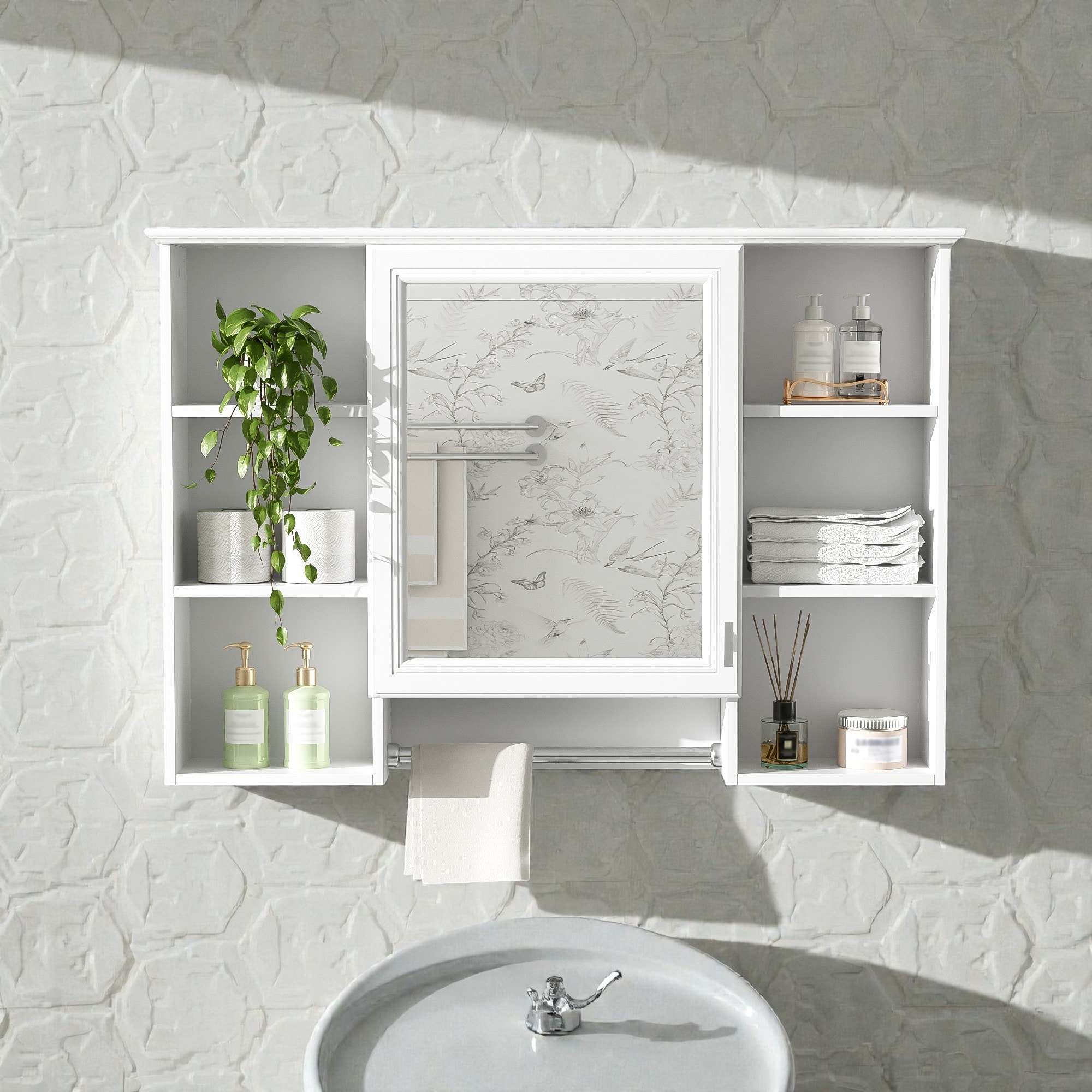 30-Inch Wall-Mounted Medicine Cabinet with Mirror, Adjustable Shelves, Hidden Storage and Open Display, MDF Bathroom Cabinet