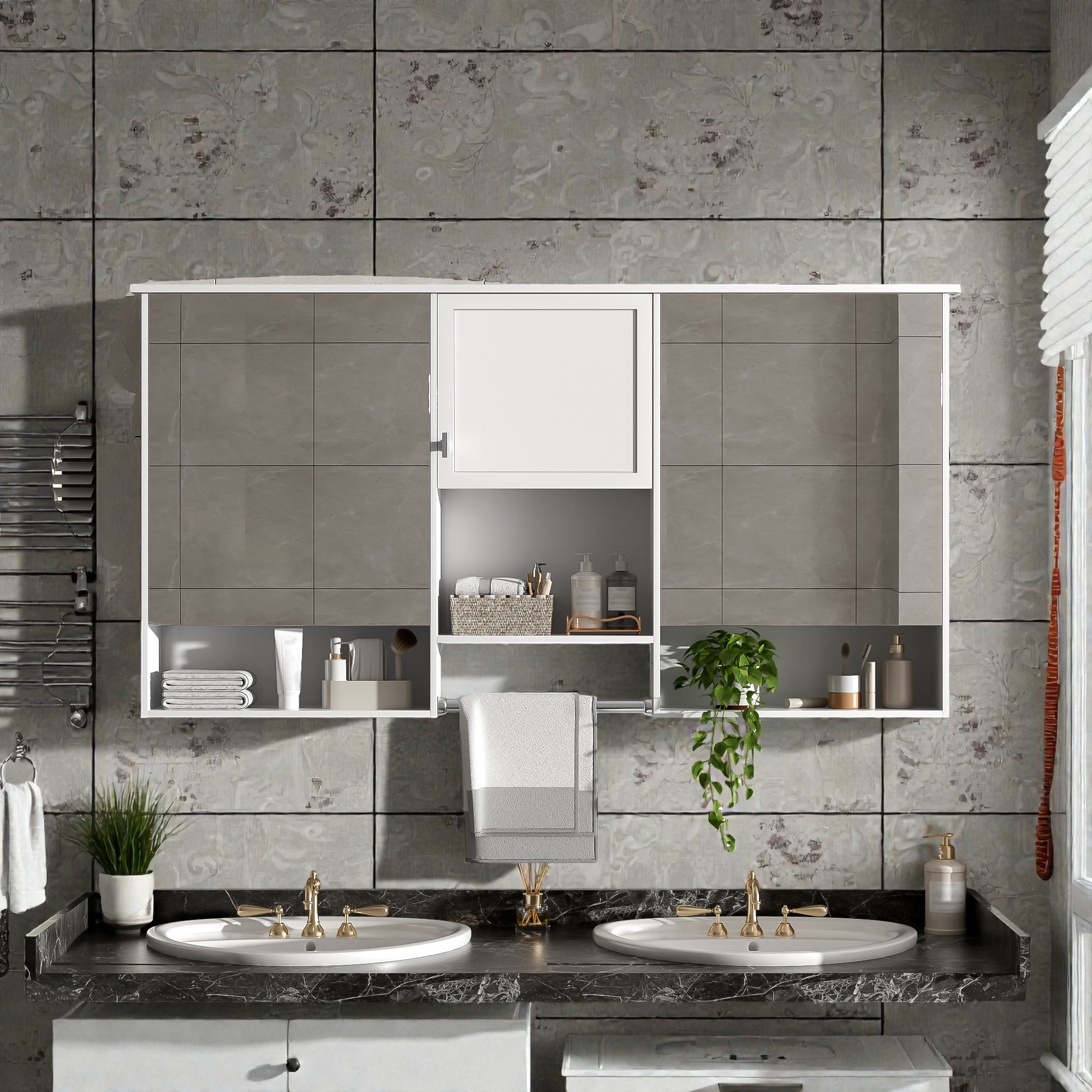 55 Inch Wall Mounted Mirror Cabinet with Adjustable Shelf, Soft Close Hinges, Bathroom Storage Organizer