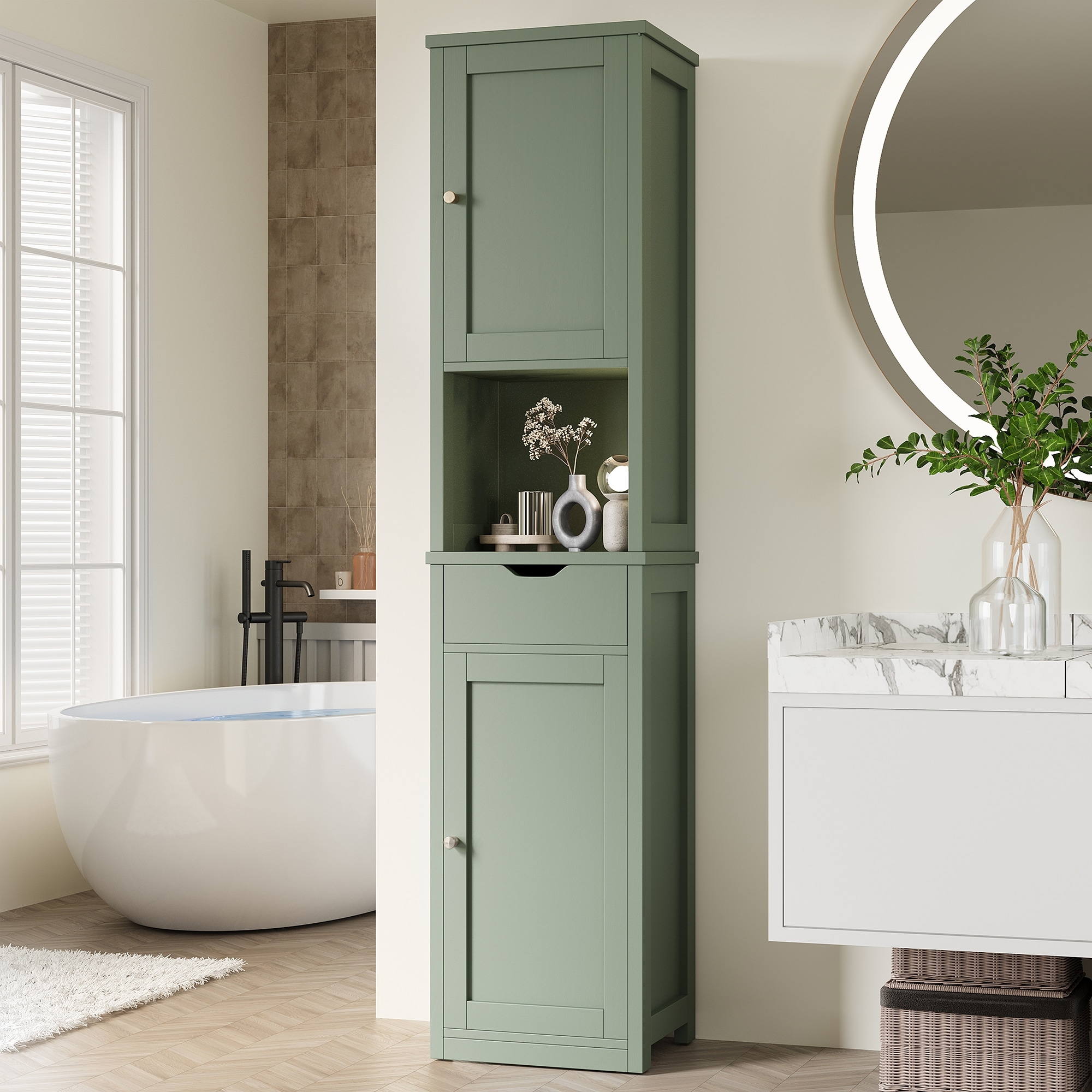 Bathroom Storage Cabinet with Adjustable Shelves & Open Shelf - N/A