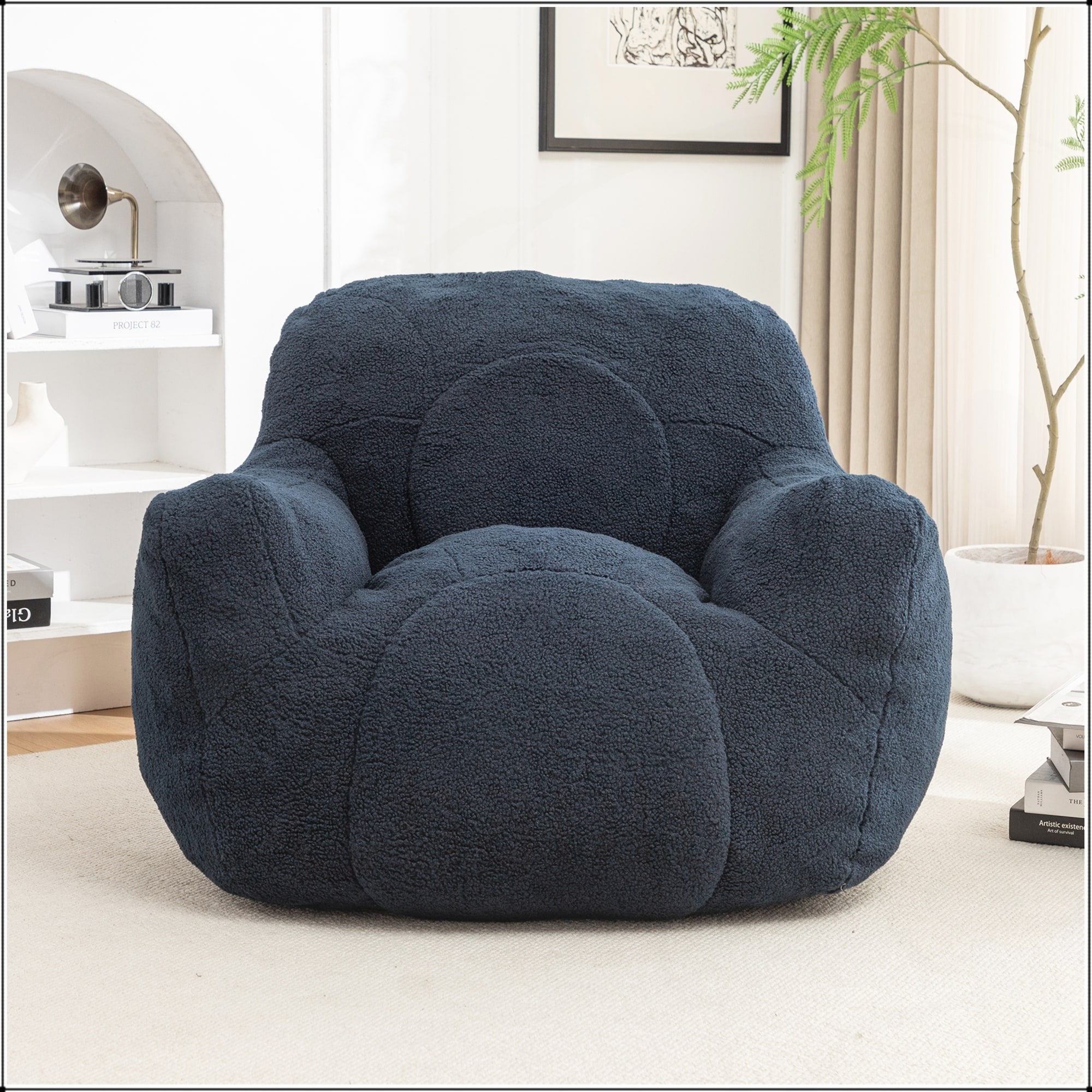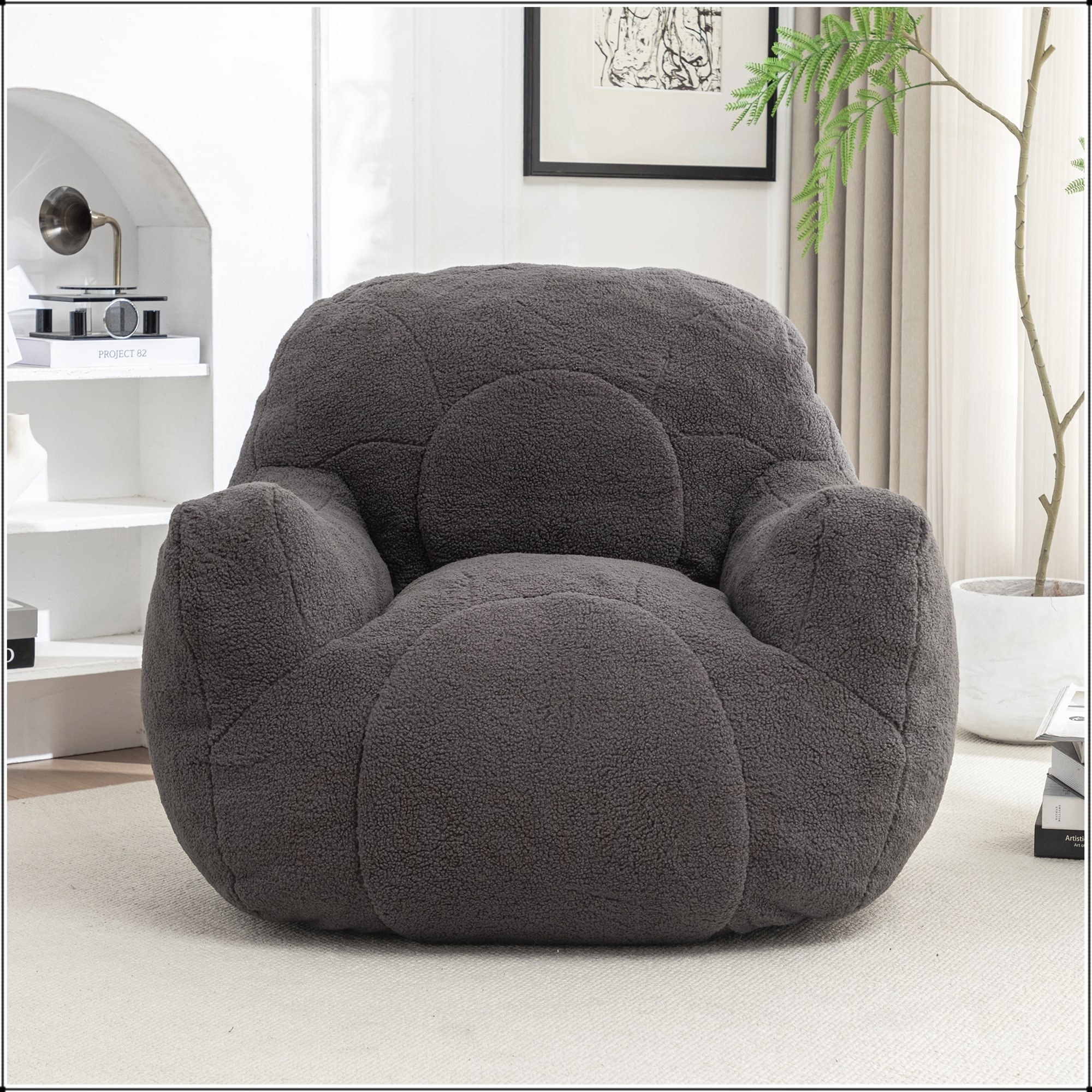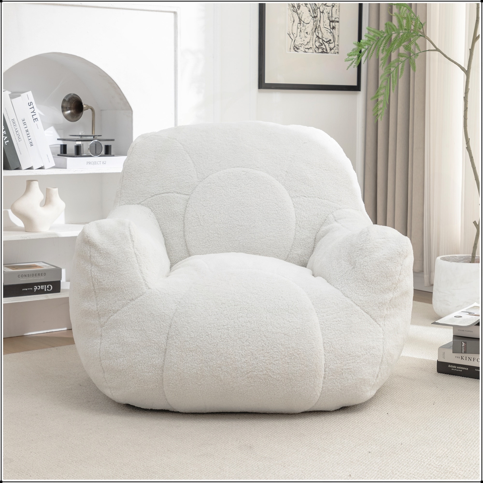 Teddy Tufted Faux Fur Bean Bag Chair, Cozy Memory Foam Floor Adults Sofa with Curved Armrests, Plush Lazy Lounger