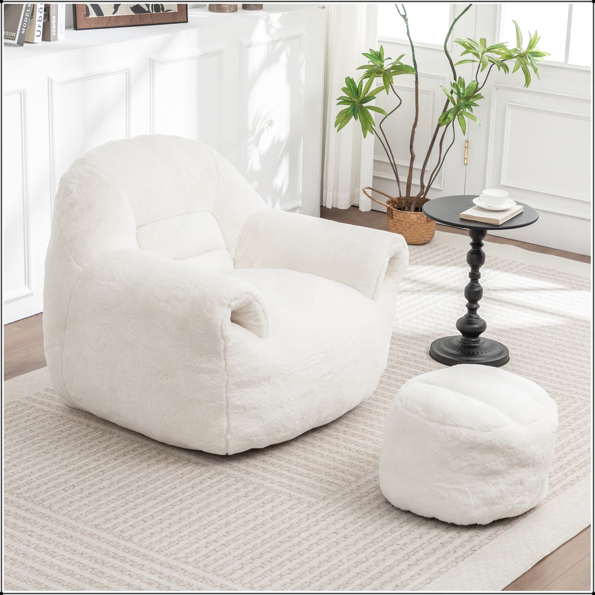 Soft Bean Bag Chair with High Resilient Foam, Modern Chenille Comfortable Square Lazy Sofa with Footstool, for Living Room