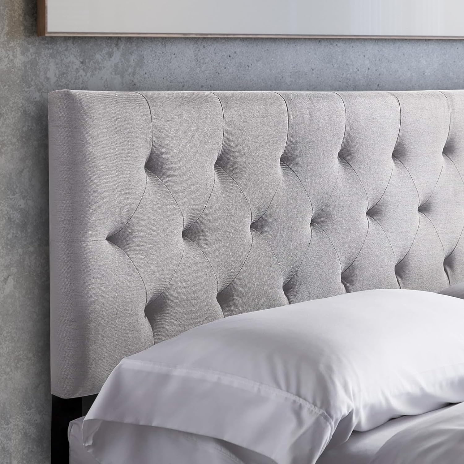 Adjustable Fabric Upholstered King Size Headboard with Diamond Design