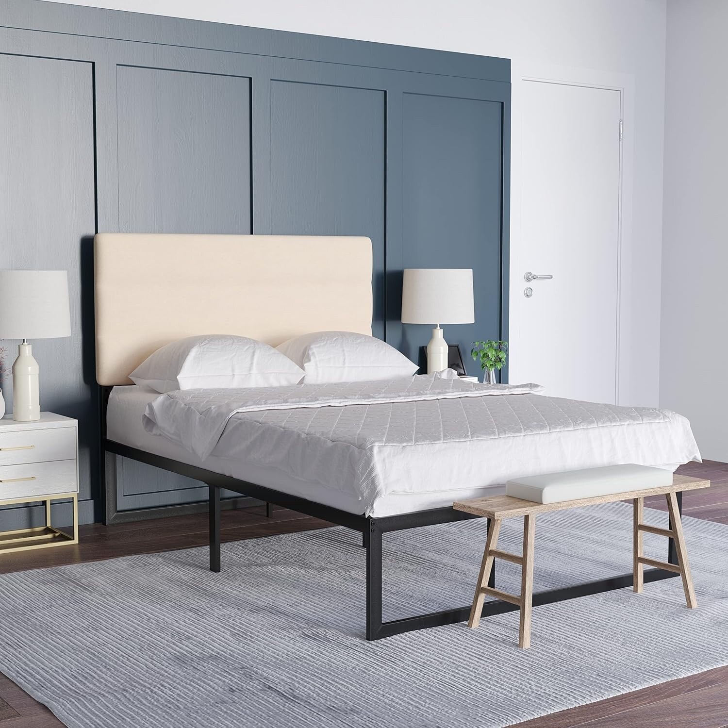 Modern Cream Fabric Upholstered Headboard with Adjustable Height, Easy Assembly, Fits Most Bed Frames