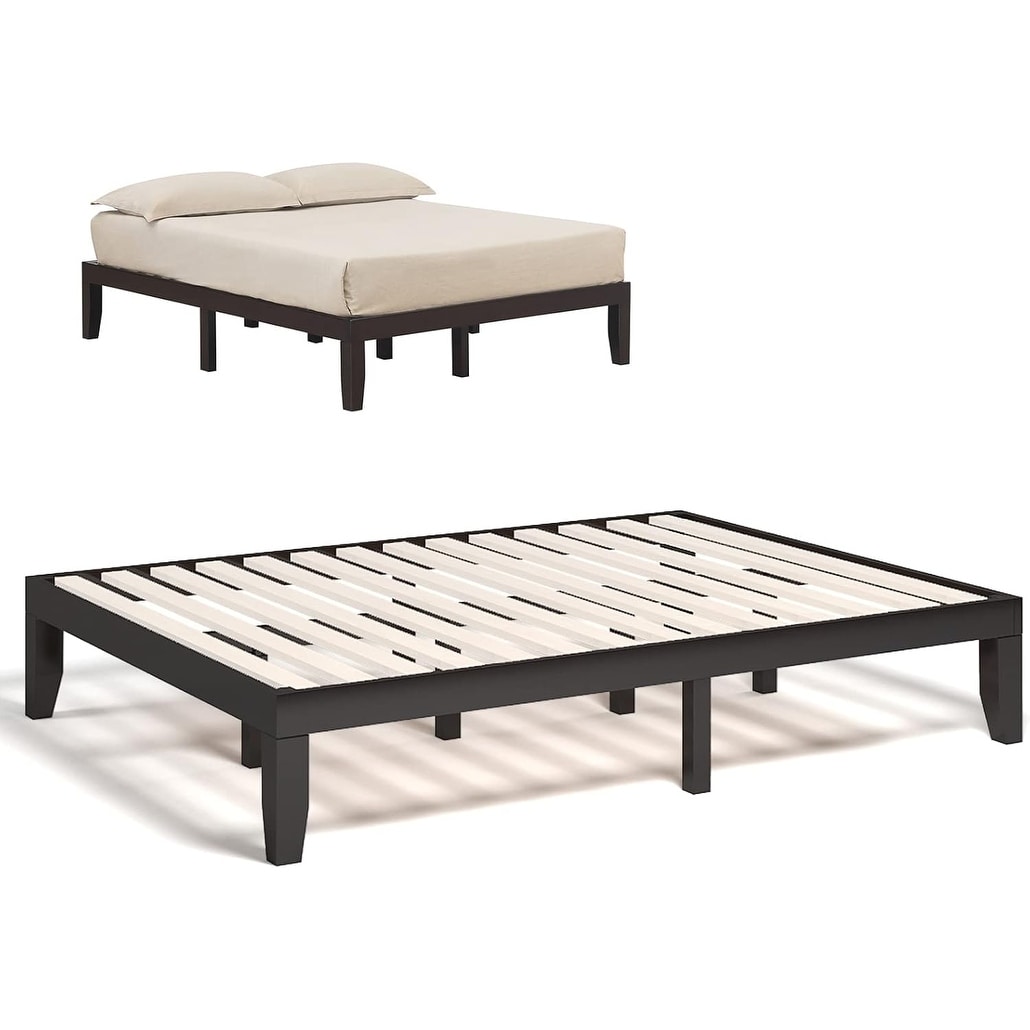 Queen Size Platform Bed Frame, 14 Inches Solid Wood Mattress Foundation with Sturdy Slats, Easy Assembly, No Box Spring Needed