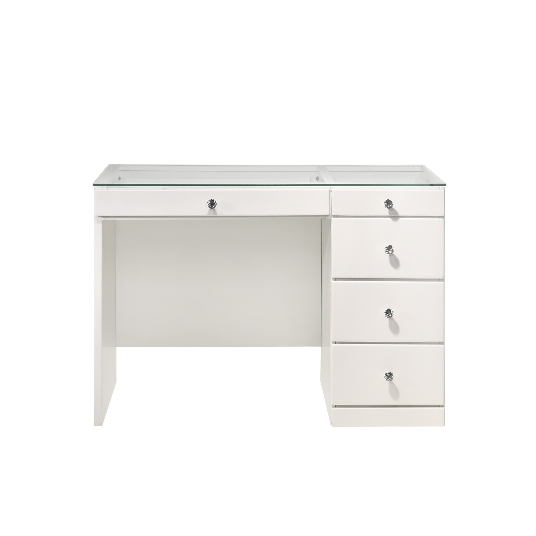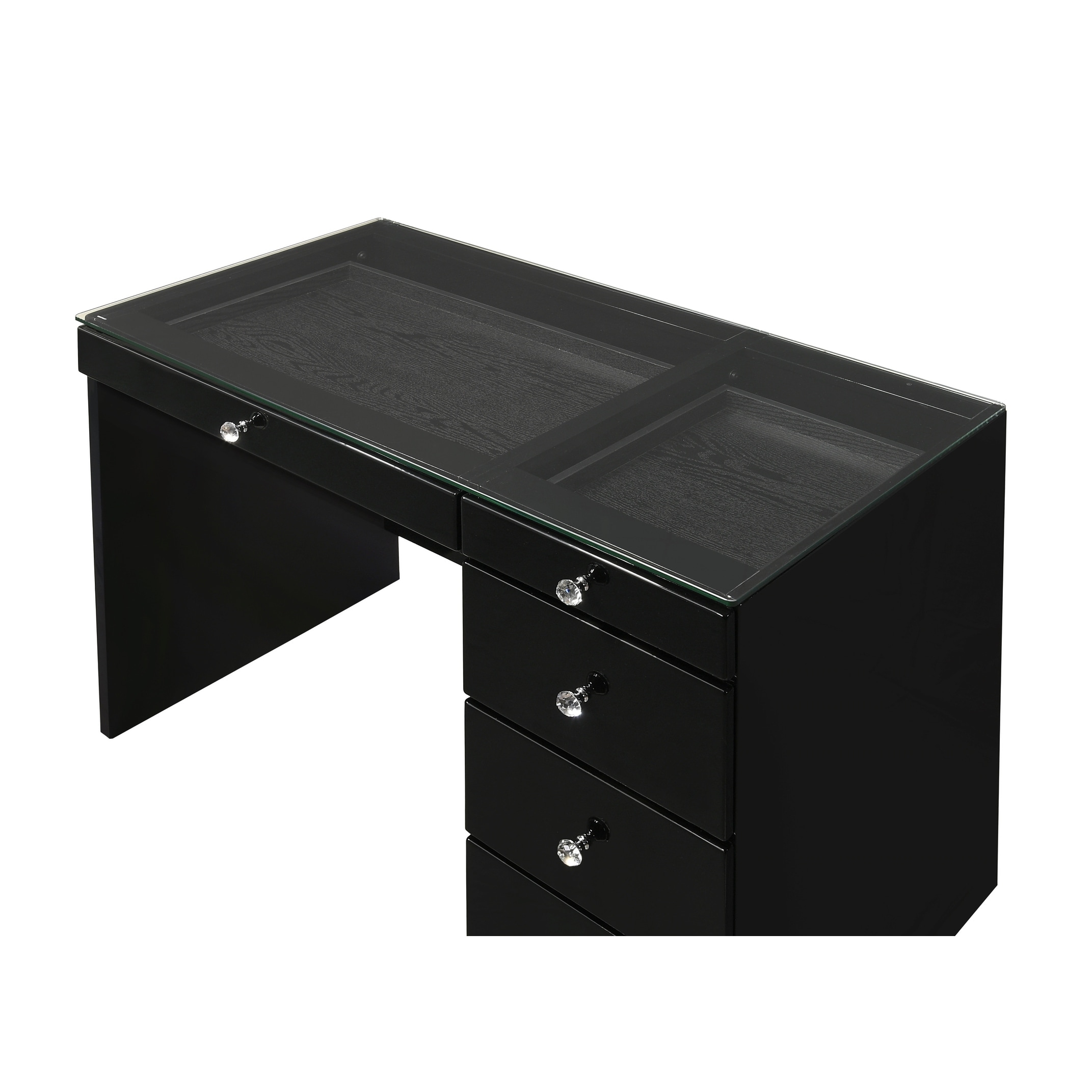 1pc Glam Makeup Vanity Table Glass Top 5 Drawers Crystal Knobs Black Wooden Bedroom Furniture