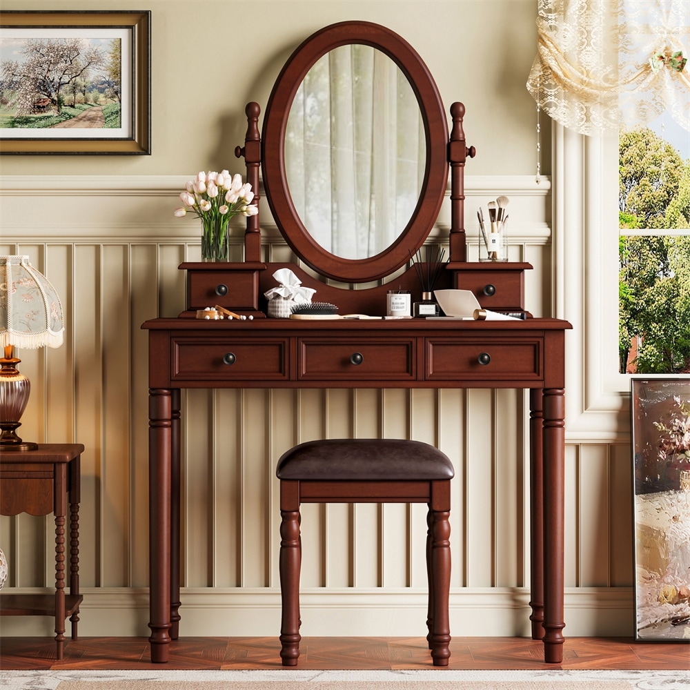Costway Vanity Table Makeup Table Cushioned Mirror 5 Drawers Black
