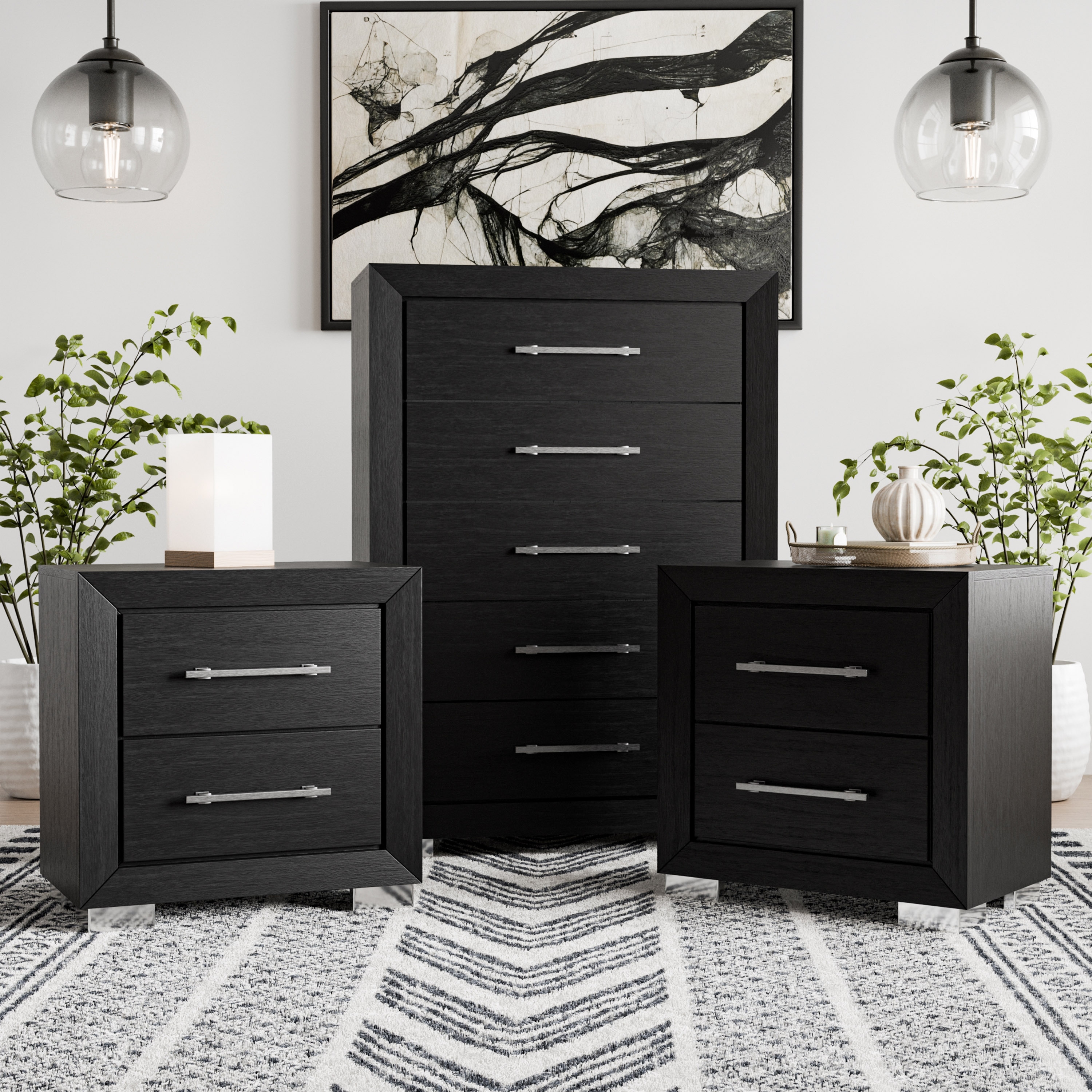 Furniture of America Alaric Modern 3-Piece Black Wood Chest and 2-Nightstand Bedroom Set
