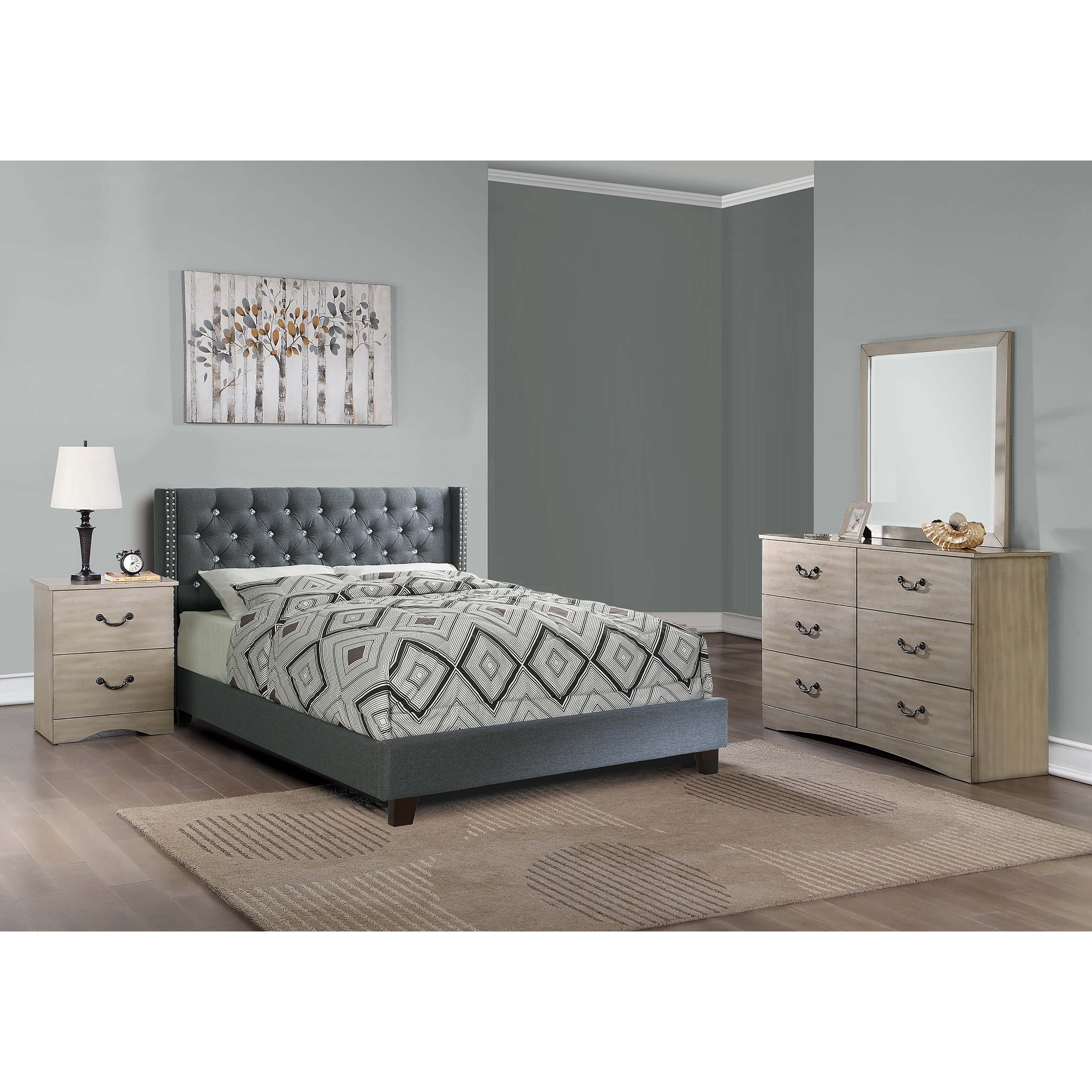 Upholstered Bed Set Nailhead Trim Plastic Legs Blue Gray Finish