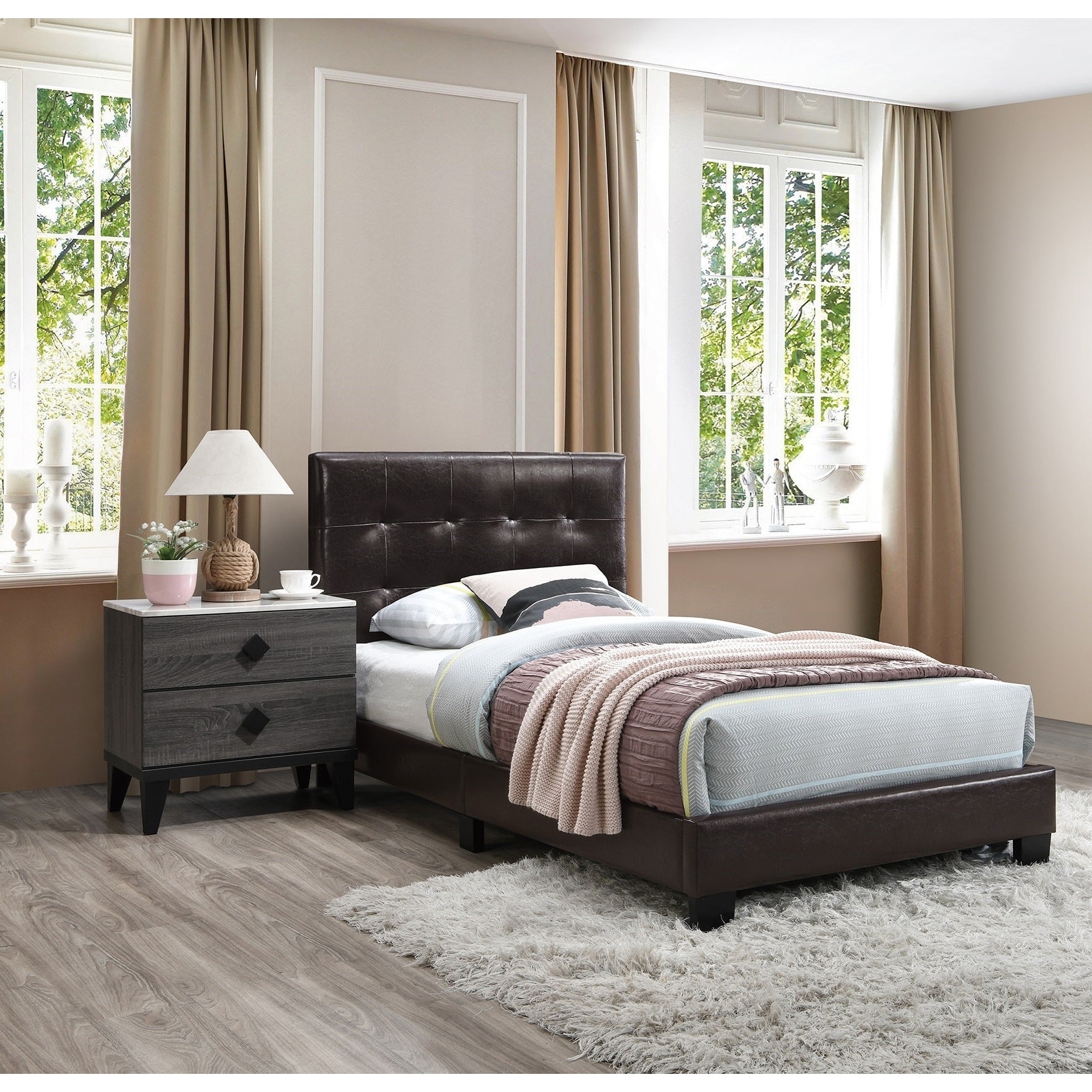3pc Bed Set Twin Bed 2x Nightstand Faux Marble Top Diamond Handles