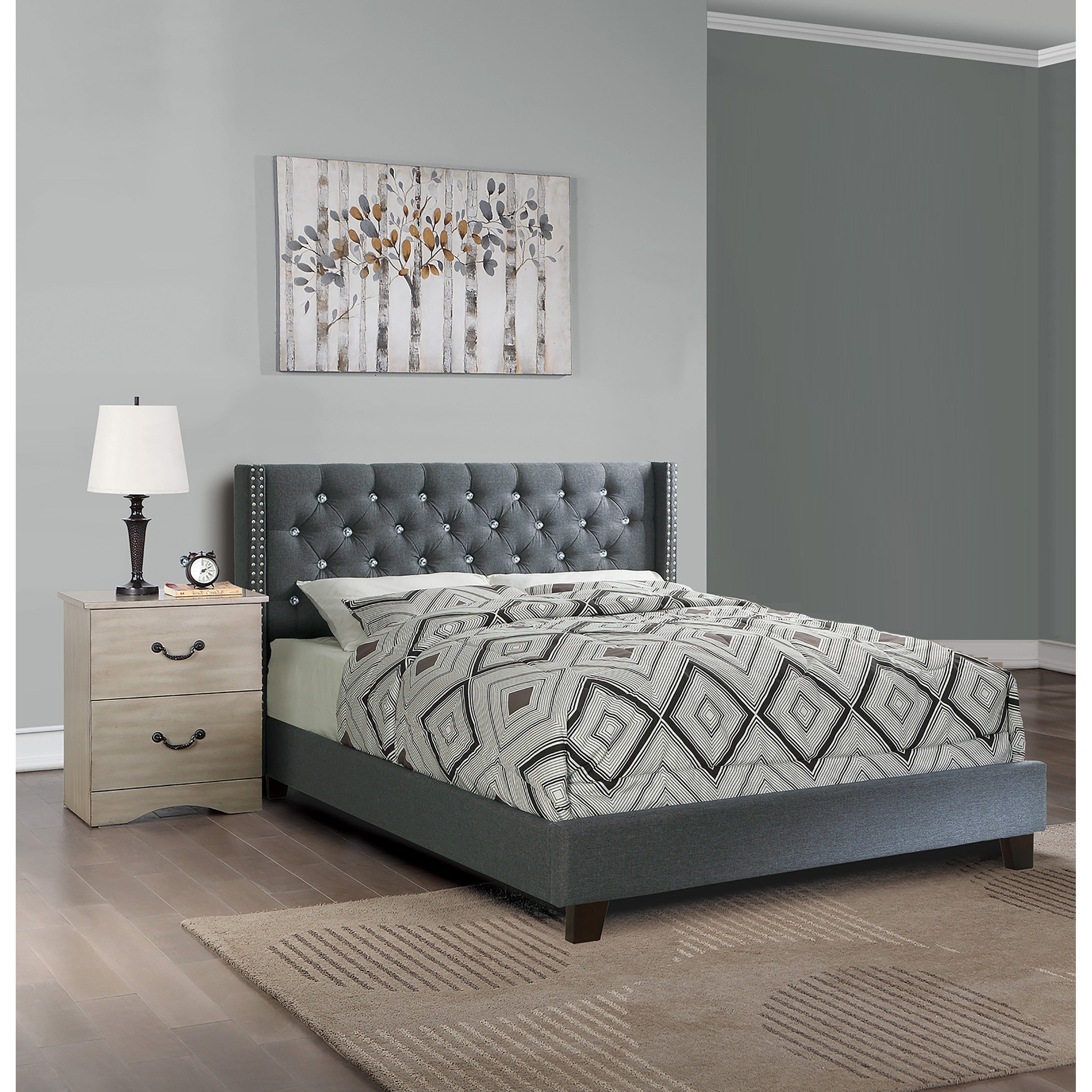 Bedroom Set Blue Gray Finish 3pc Set Bed 2x Nightstand Pull Handles
