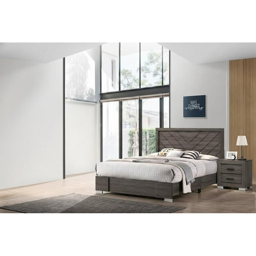 Bedroom Sets Silver Gray Finish Platform Bed with Storage