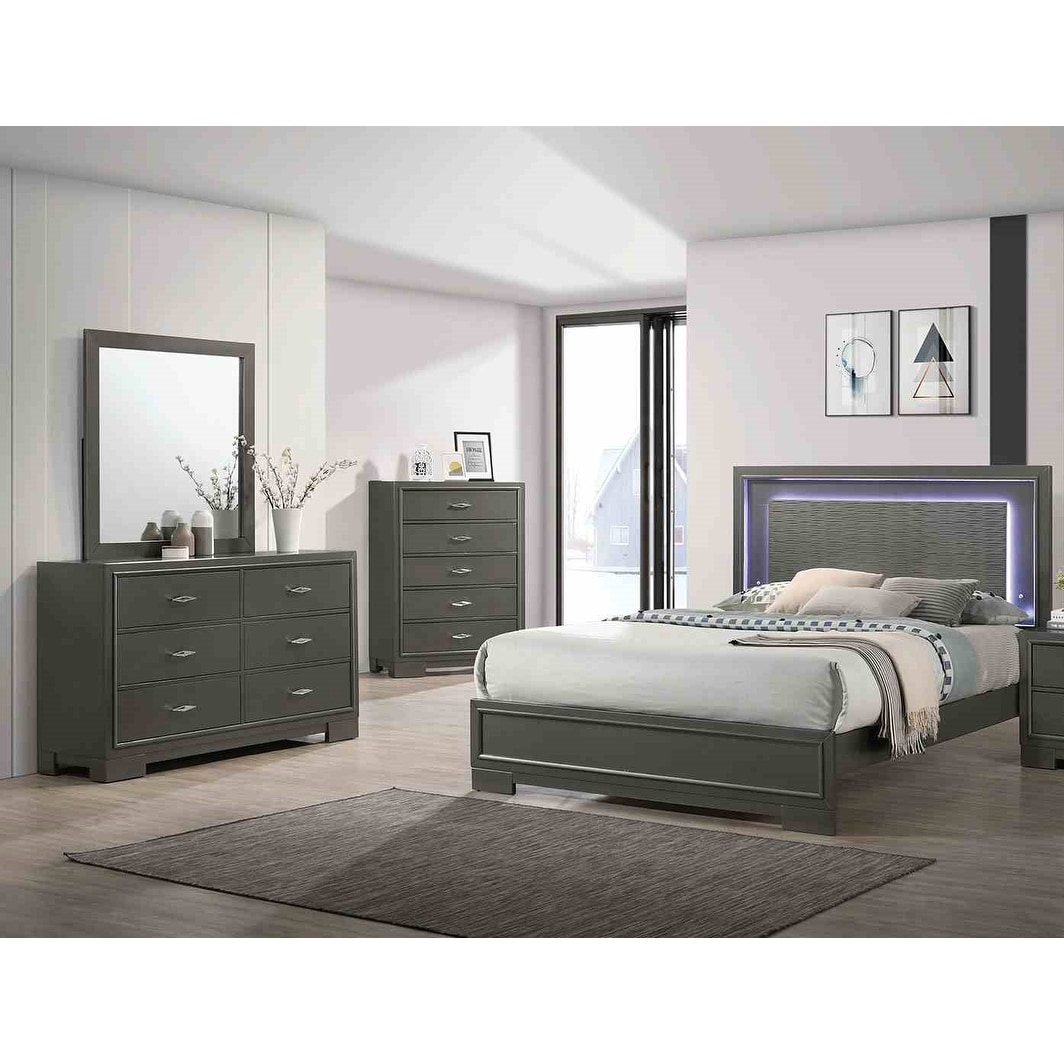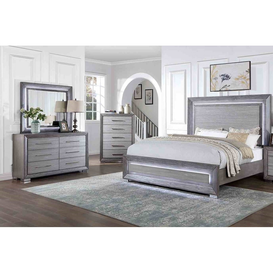 Gray Finish Transitioanl LED Bedroom Furniture Set 4pc