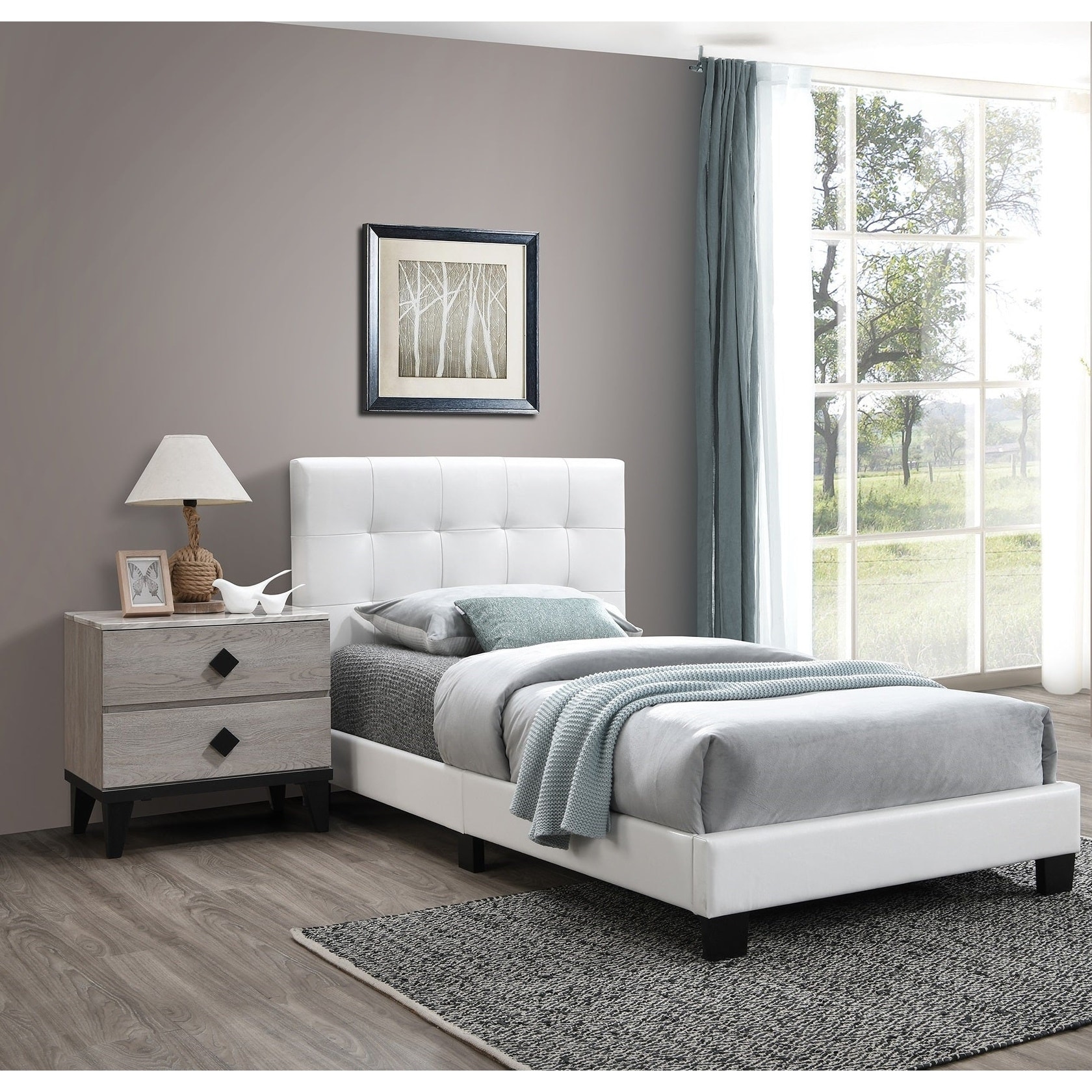 3pc Bedroom Furniture Light Gray Bed Chest Nightstand Set Wooden Classic