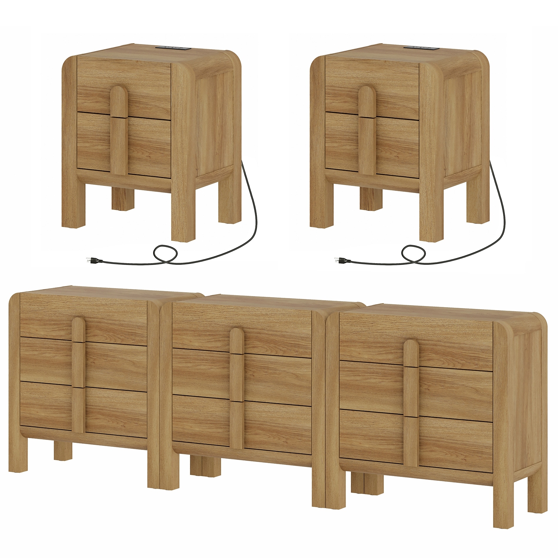 Bedroom 6-Drawer Wood Dresser and Charging Nightstand Set