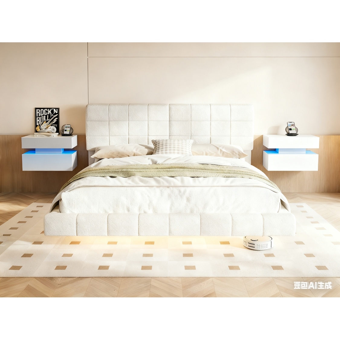 3-Piece Bedroom Set, Modern Floating Bed Frame with LED Lights,set of 2 Wall-Mounted nightstand with LED Light