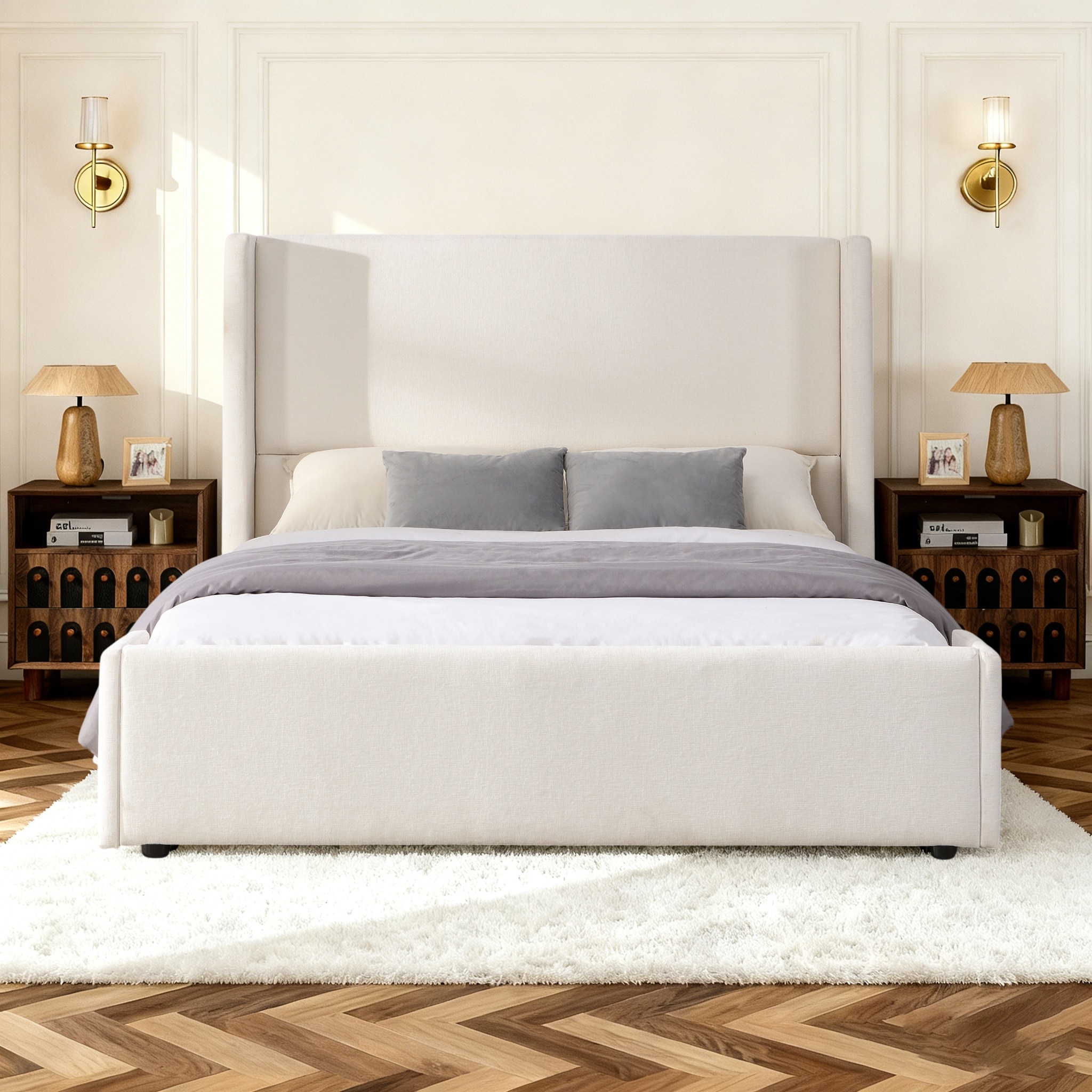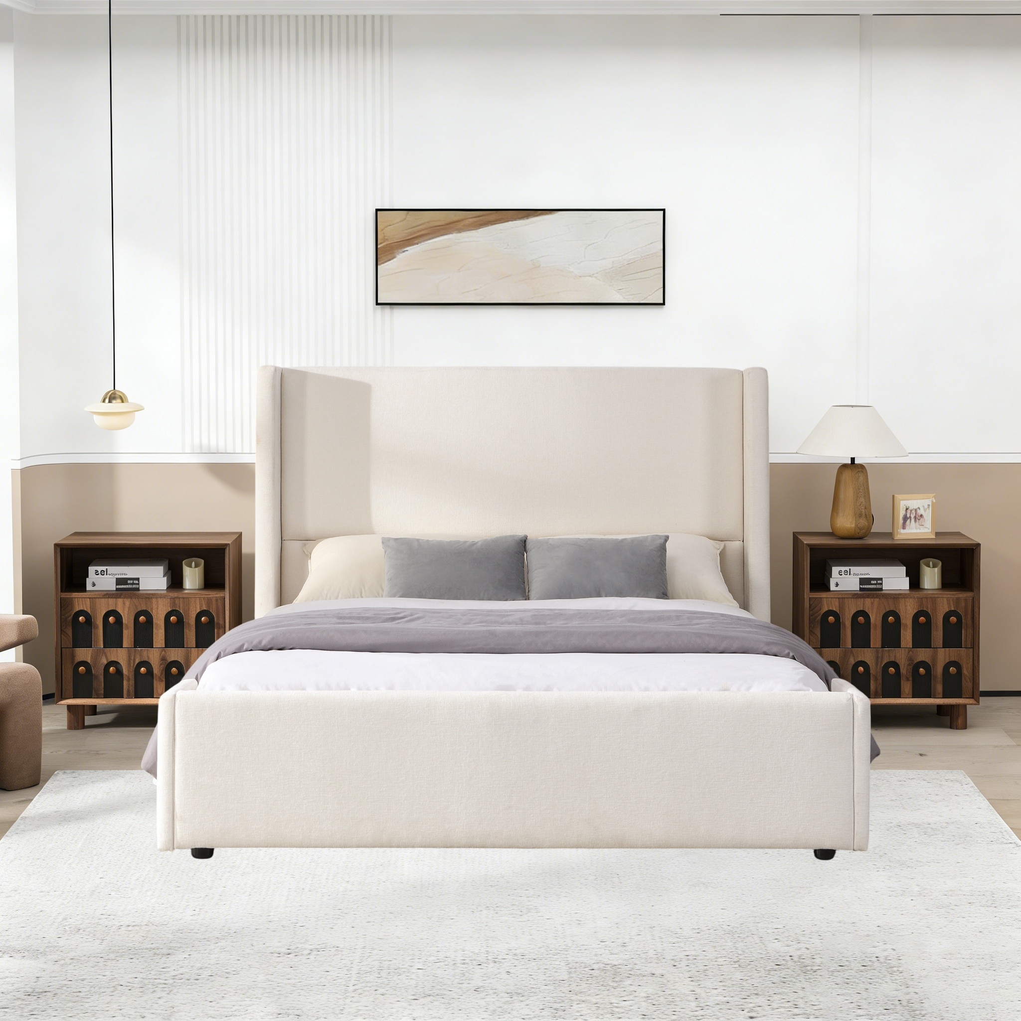 3-Piece Bedroom Set, Upholstered Platform Bed with 41" Tall Wingback Headboard,set of 2 Nightstand with Charging Station