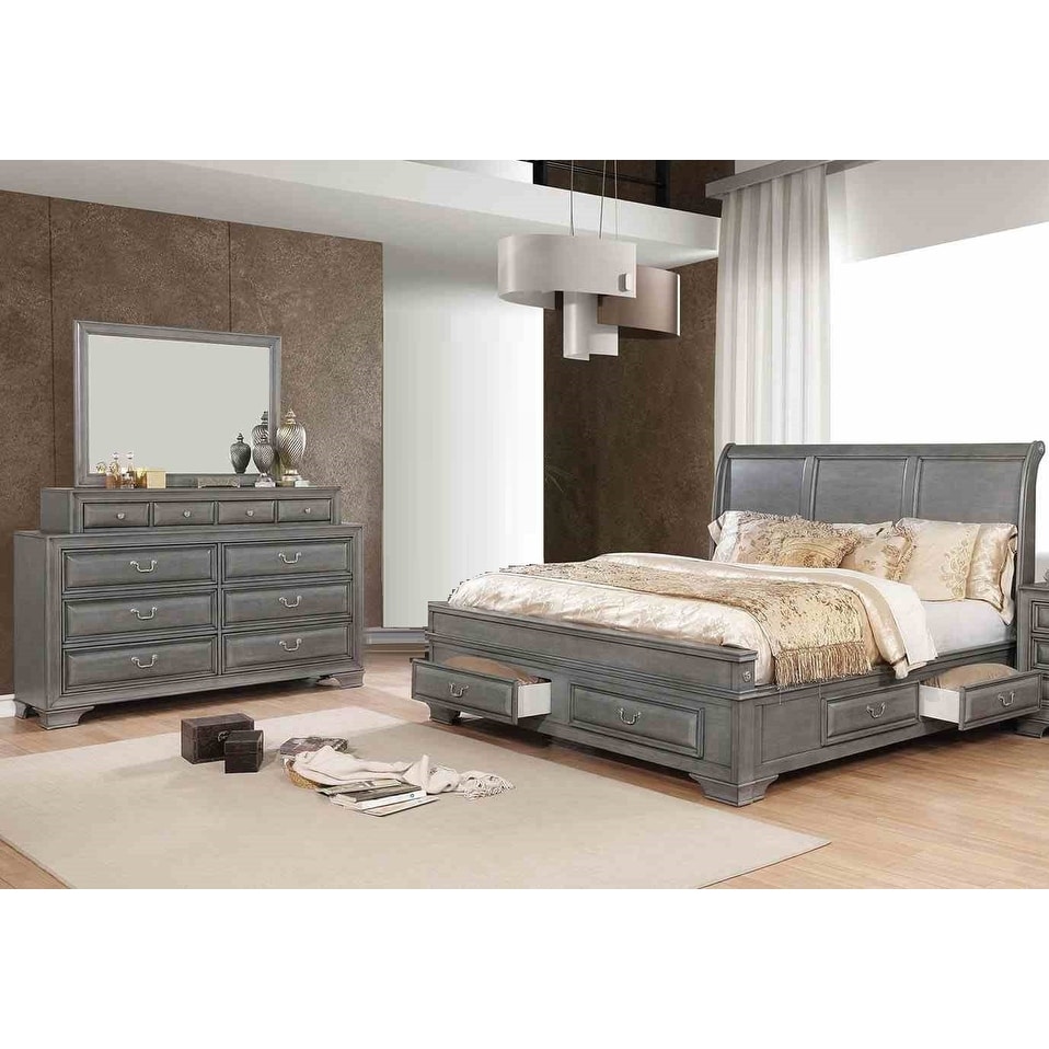 3pc Gray Finish Solid Wood Bedroom Furniture Set Bed Dresser Mirror