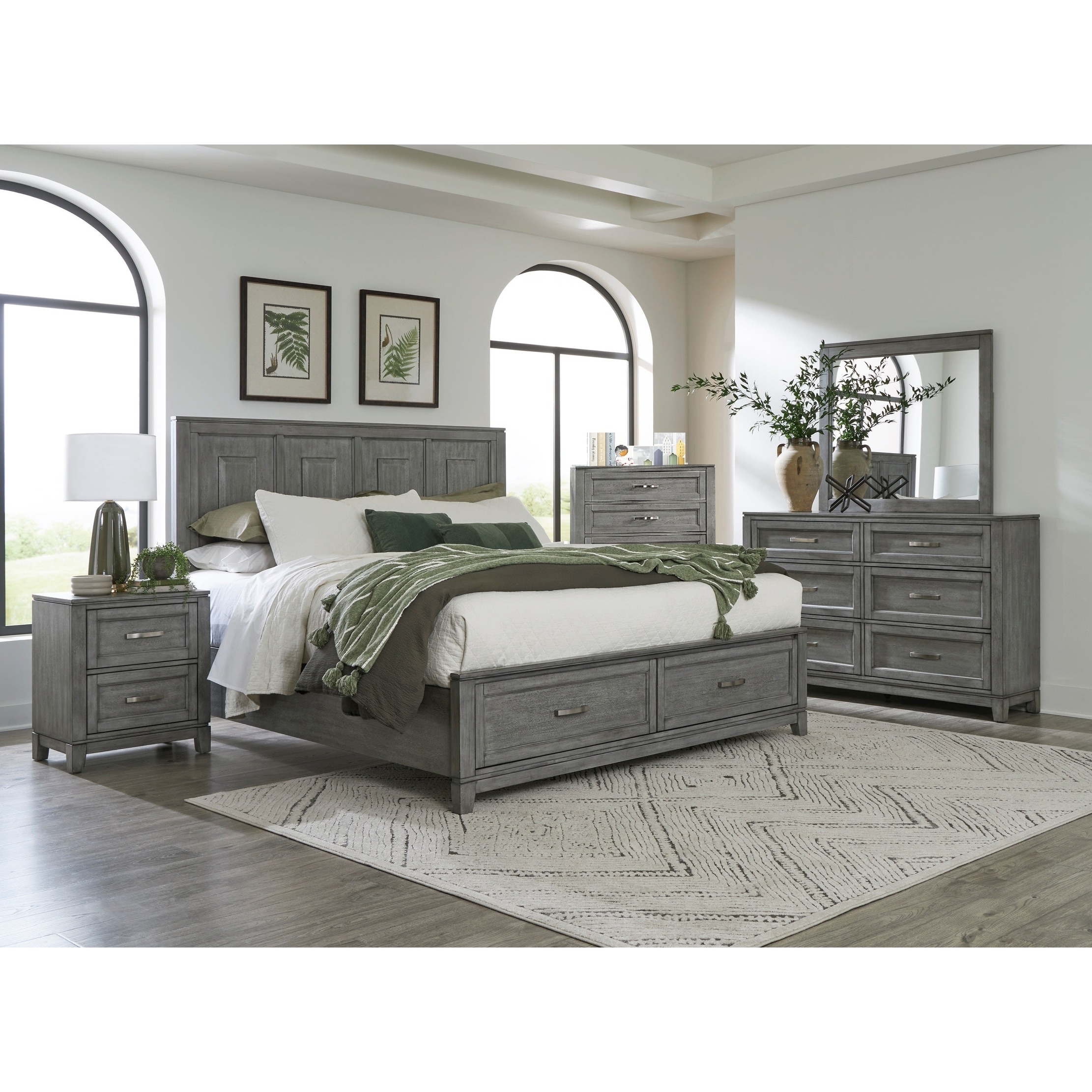 Gray Finish Storage Bedroom Sets Platform Bed Nightstand Dresser Mirror Chest Transitional Furniture
