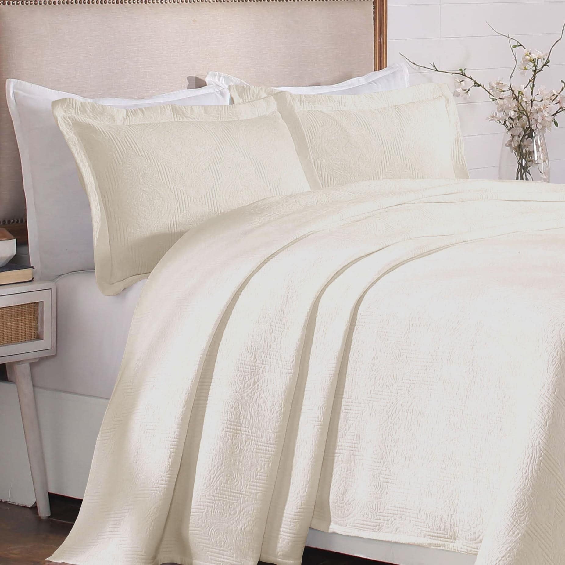 Blue Nile Mills Oversized 100% Cotton Matelasse Medallion 3-Piece Bedspread Set