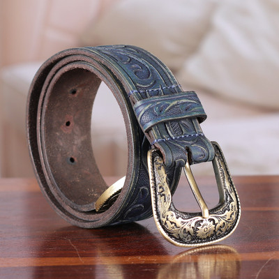 'Classic-Patterned Handmade Navy Blue Leather Belt for Men'