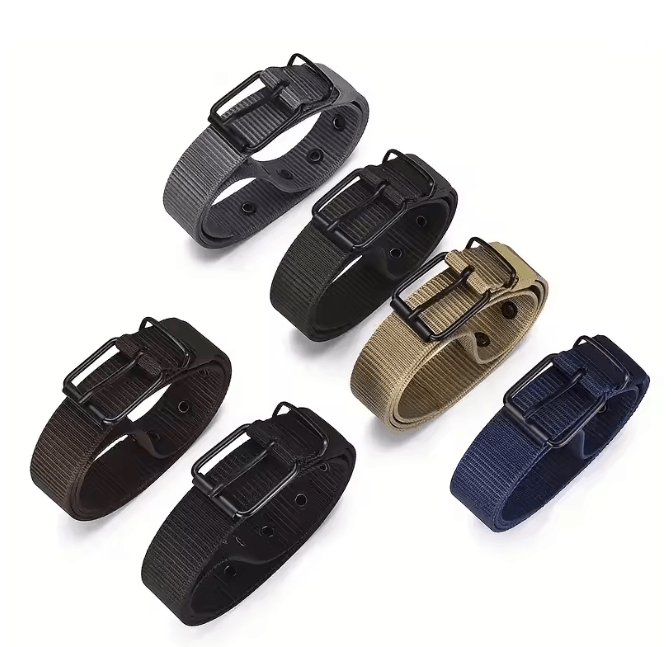 Nylon Canvas Tactical Belt With Metal Free Buckle 2pcs Black 120cm