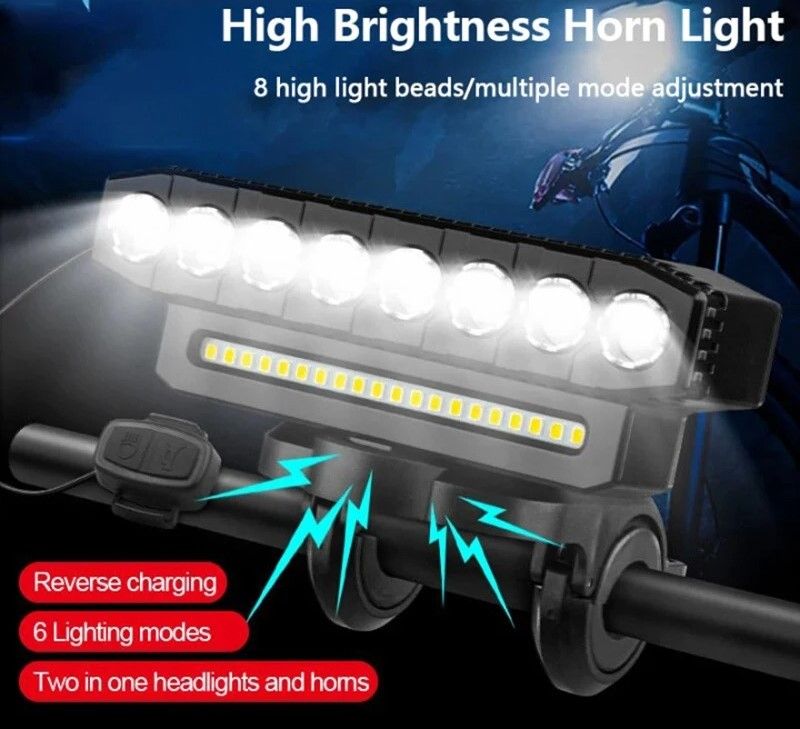 USB Rechargeable 8 LED Bike Front Light With Horn Bicycle Headlight 1 Set