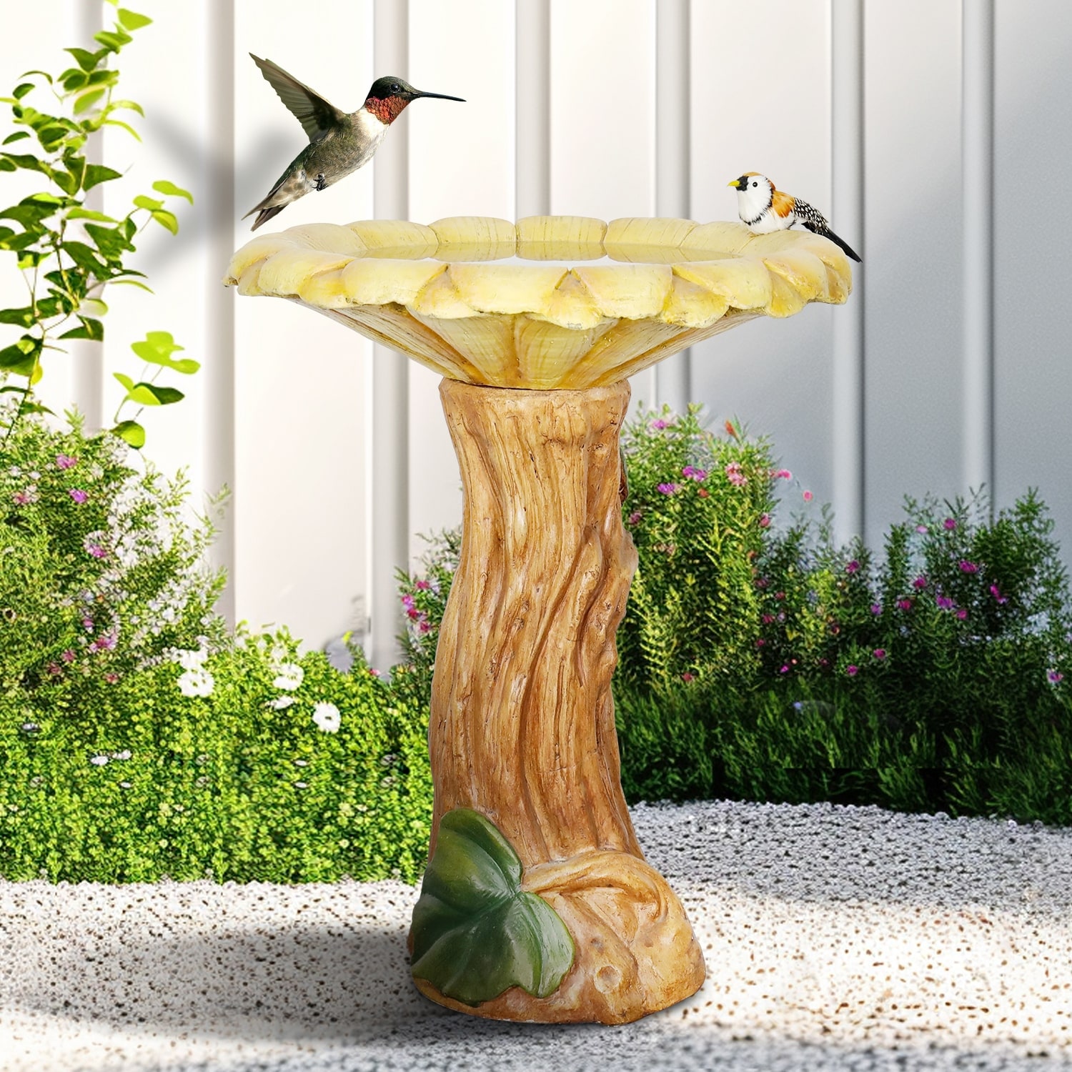 Sunnydaze Gleeful Garden Metal Outdoor Bird Bath - UV-Resistant Finish