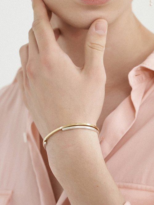 moistudio #Link Silver Plate Beige Strap Bracelet_03