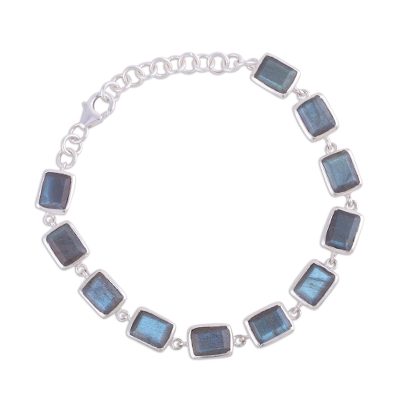 Natural Rectangles,'Labradorite and Sterling Silver Link Bracelet from India'