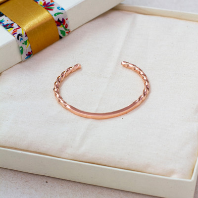 Minimalist Charm,'Polished Copper Cuff Bracelet Crafted in Mexico'