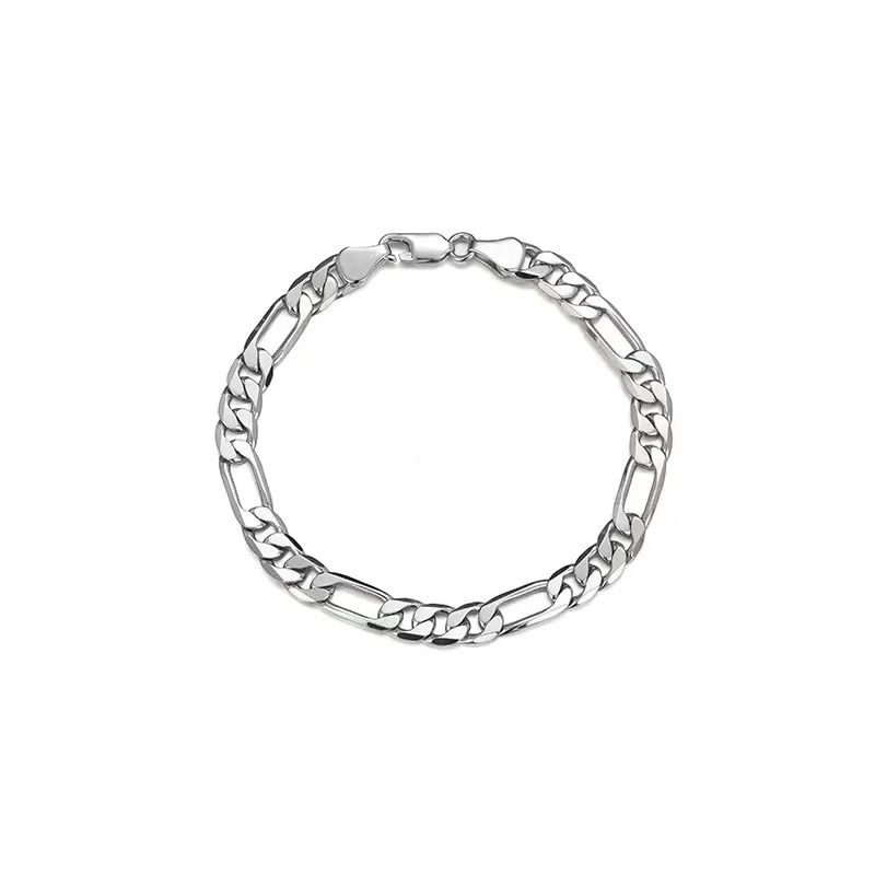 5mm Figaro Chain Bracelet Stainless Steel Silver Unisex Wristband silver 19 Cm 5 Mm