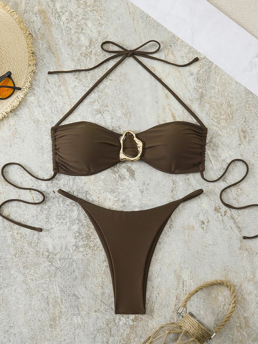 Sexy Bandeau Push Up Thong Bikini Set Womens Two Piece Swimwear black l(us 08 10)