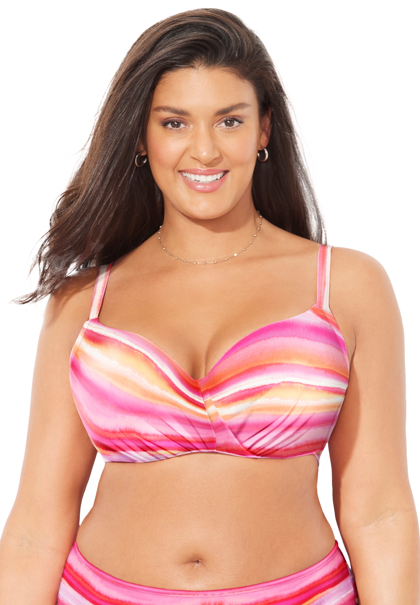Plus Size Women's Ruler Bra Sized Underwire Bikini Top by Swimsuits For All in Sunset Stripe (Size 36 F)