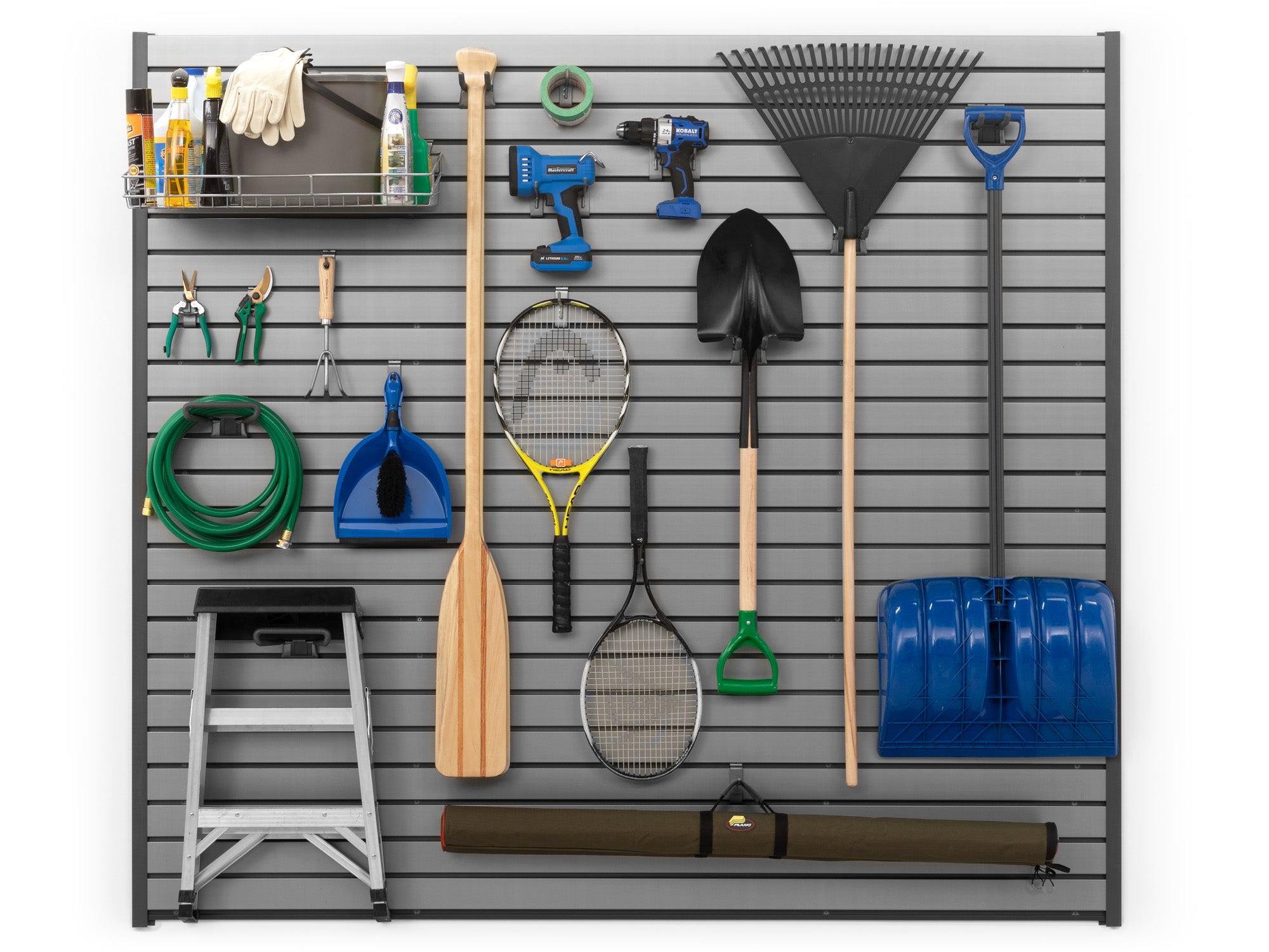 NewAge Garage Cabinets Lockable 80 SQ. FT. PVC Slatwall with 40-Piece Accessory Kit