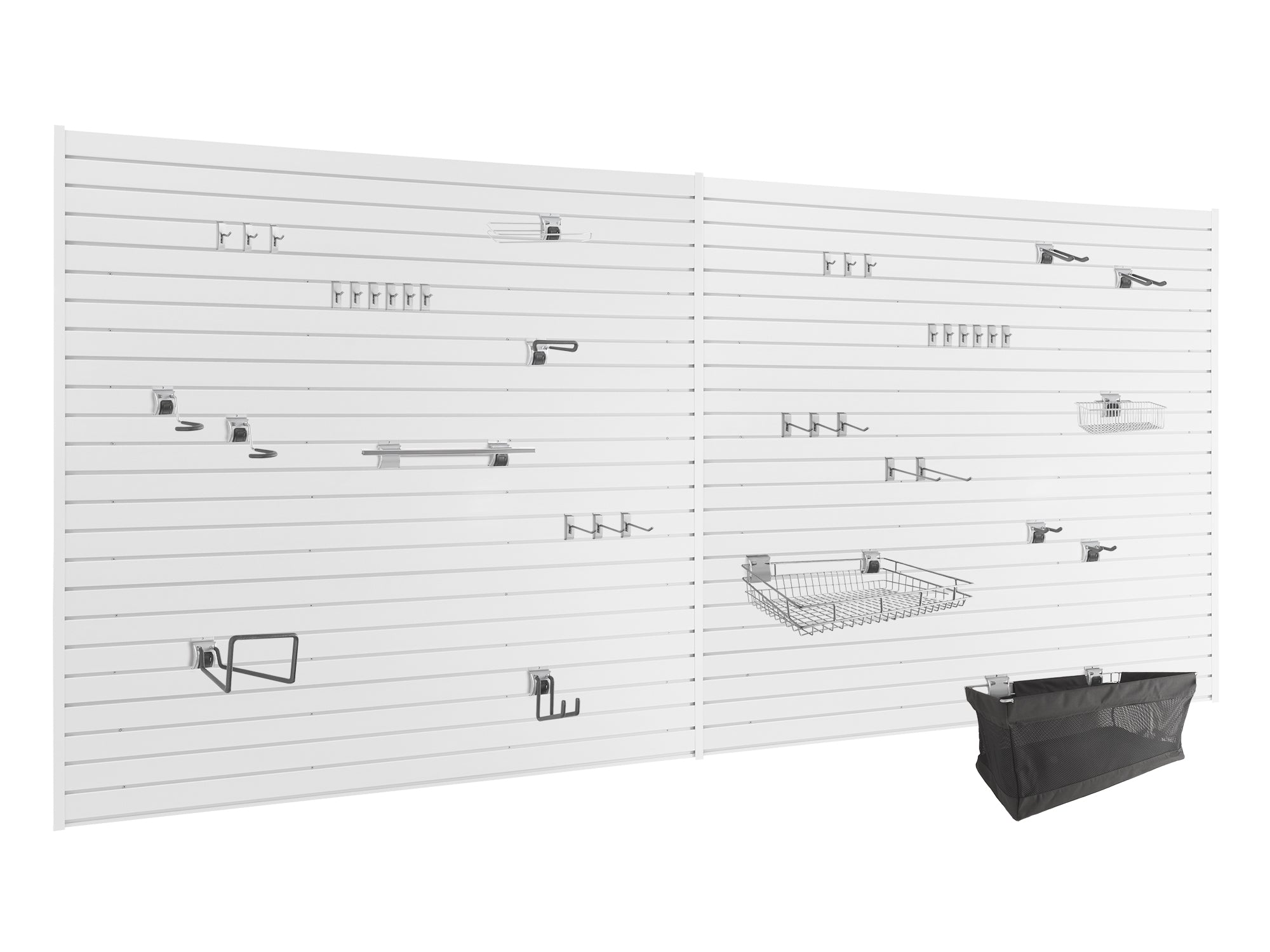 NewAge Garage Cabinets Lockable 120 SQ. FT. PVC Slatwall with 40-Piece Accessory Kit