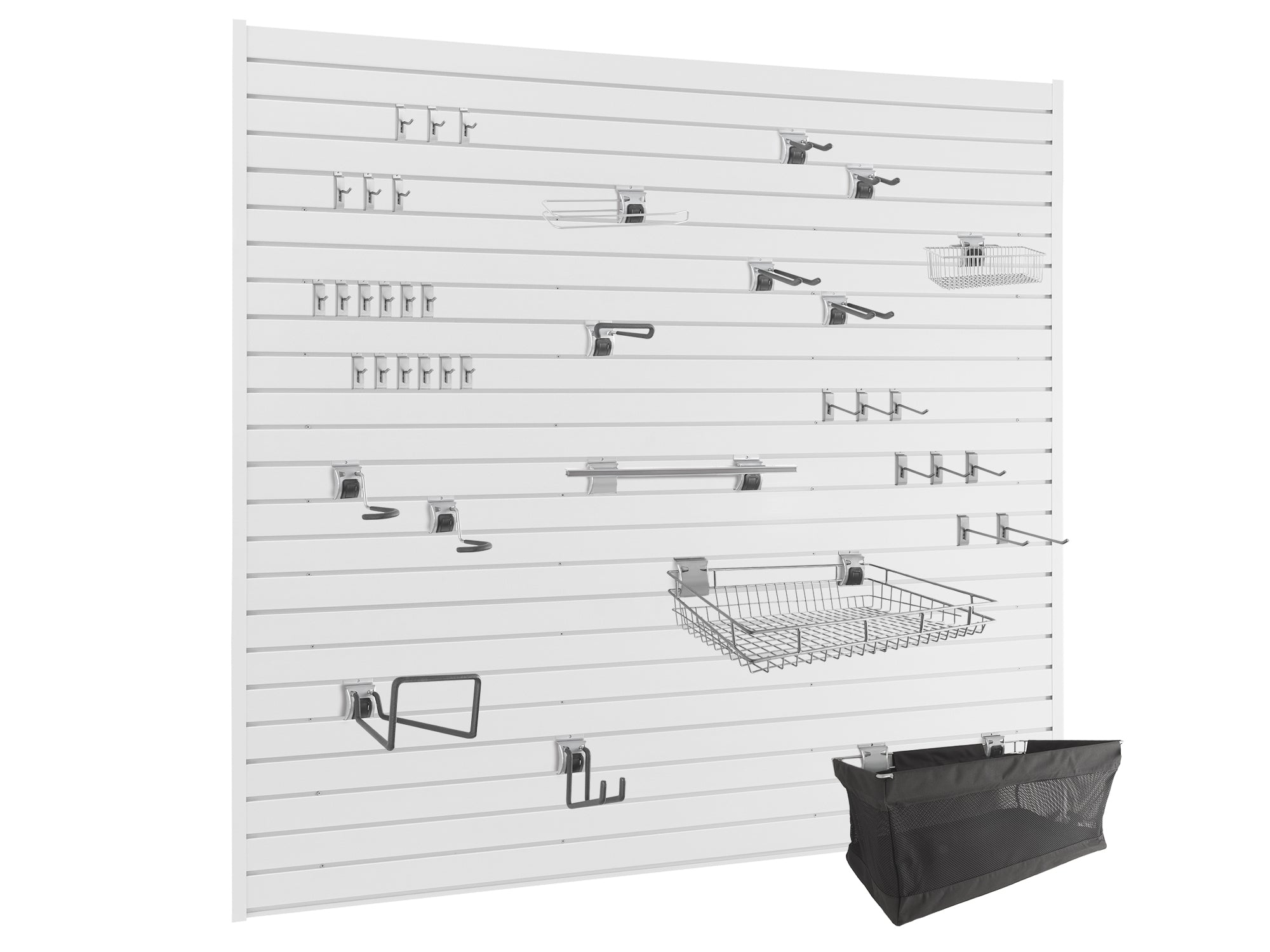 NewAge Garage Cabinets Lockable 40 SQ. FT. PVC Slatwall with 40-Piece Accessory Kit