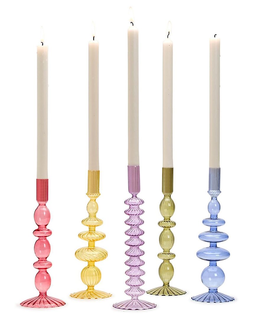 Two's Company Set Of 5 Hand-Blown Glass Candleholder