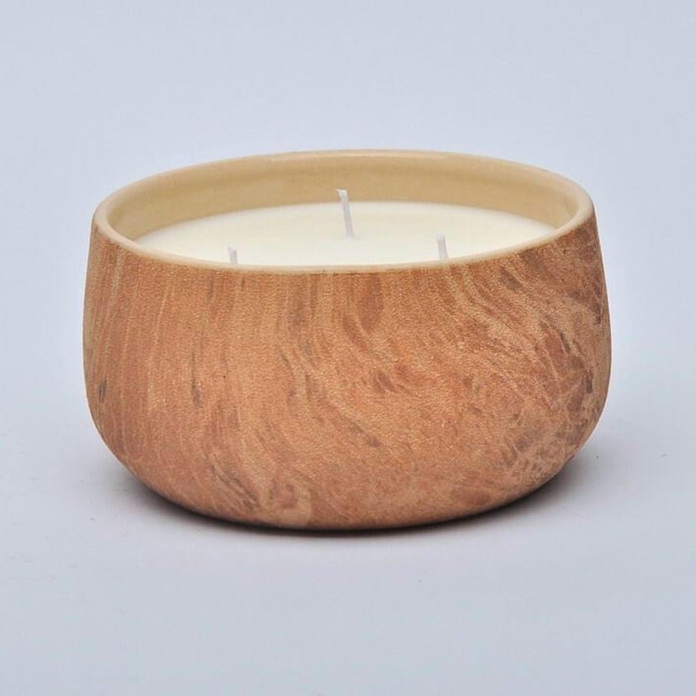 Brown Terra Cotta Three Wick Ceramic Candle 24oz Floral Scented Vessel
