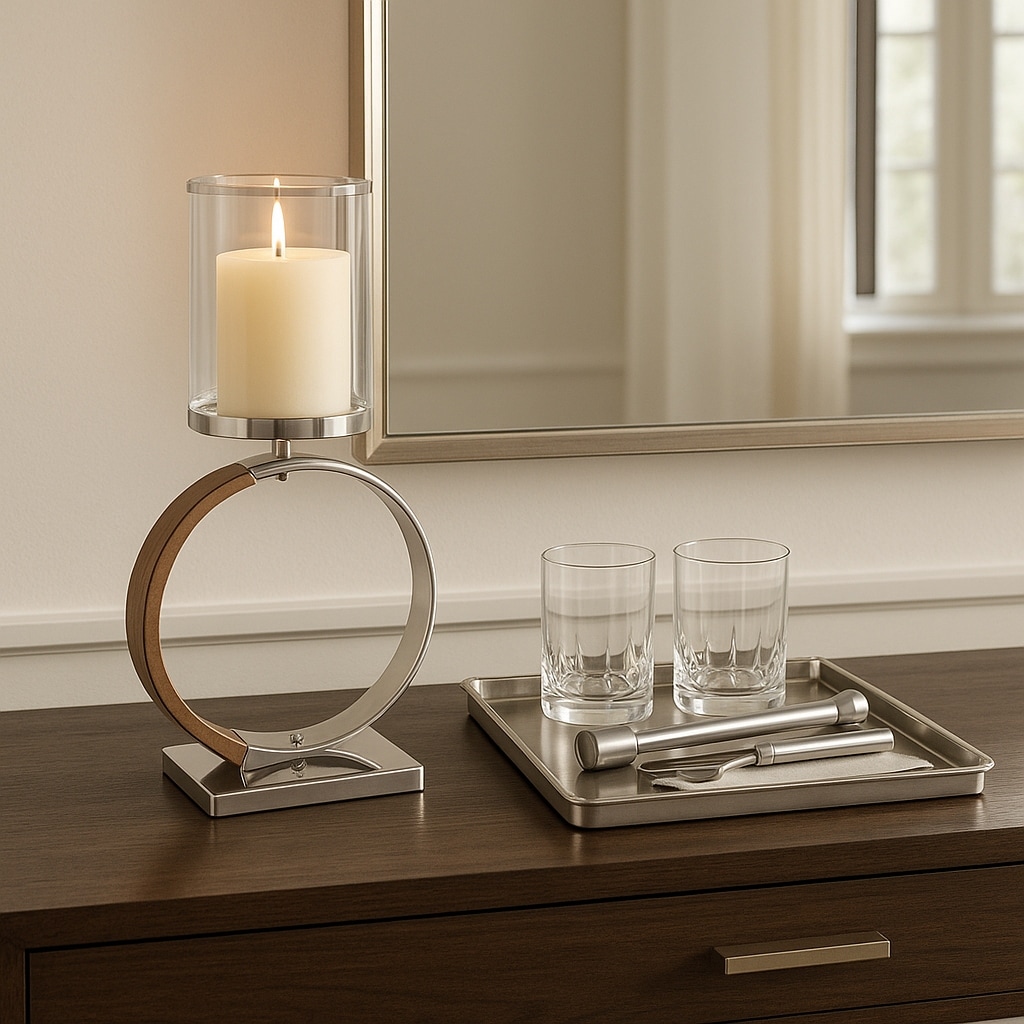 Silver Stainless Steel Metal Abstract U-Shaped Candelabra