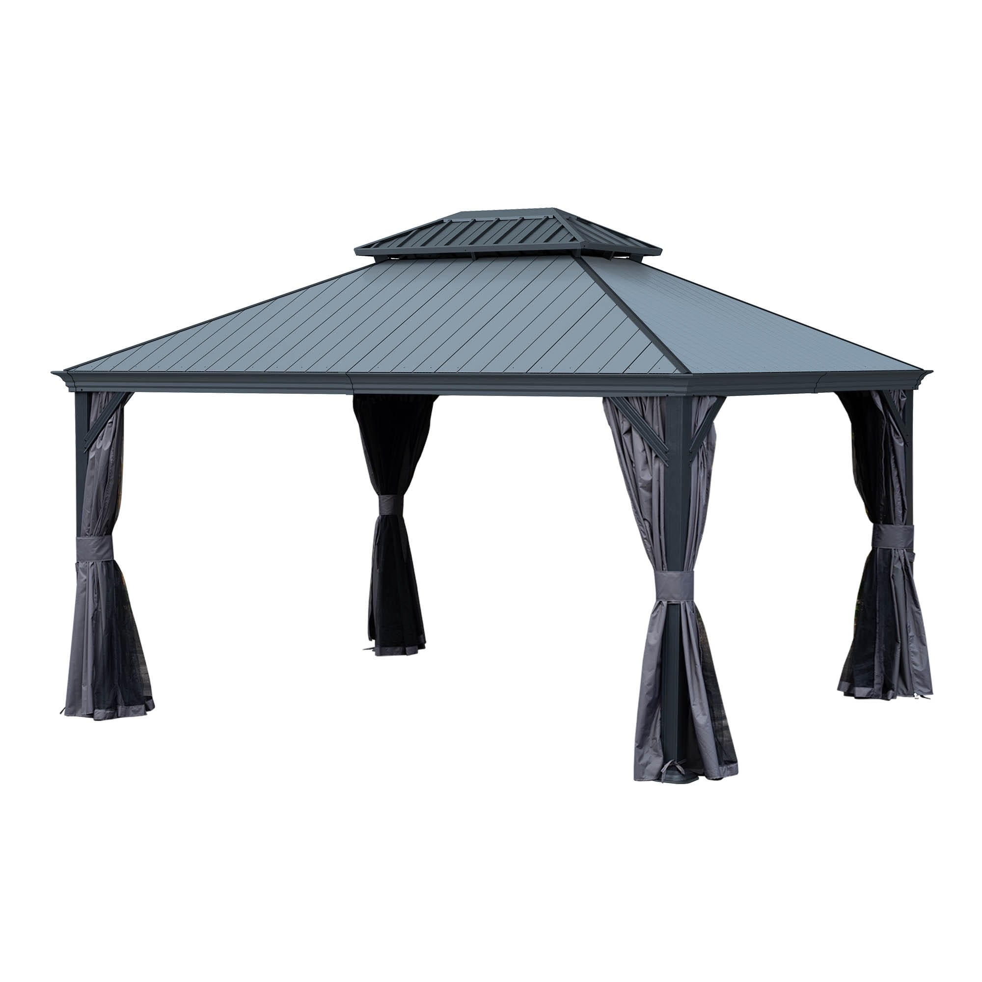Hardtop Gazebo With Resin Roof Drainage Gutters And Permanent Heavy Duty Pavilion