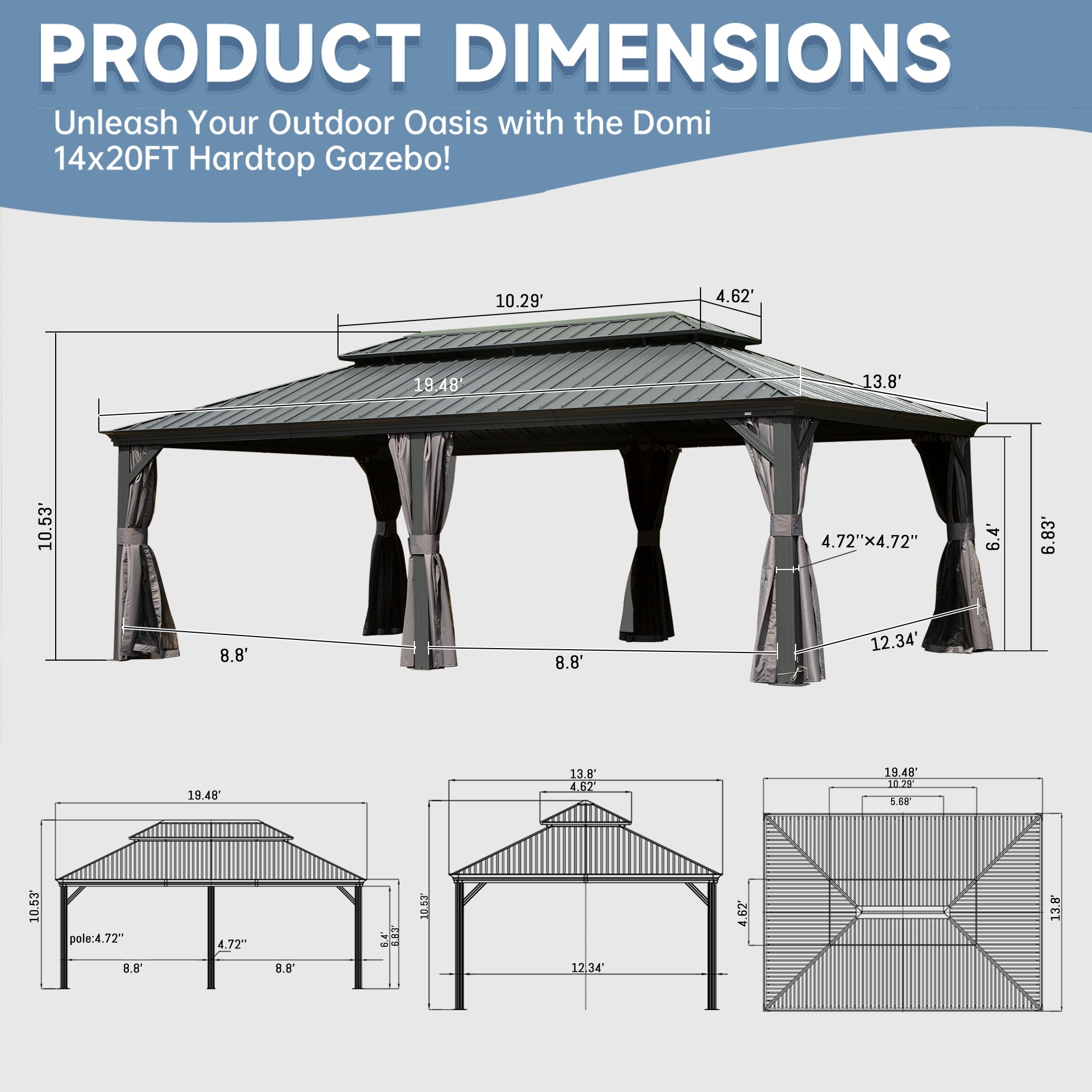 Permanent Hardtop Outdoor Gazebo With Galvanized Steel Double Roof And Aluminum Frame