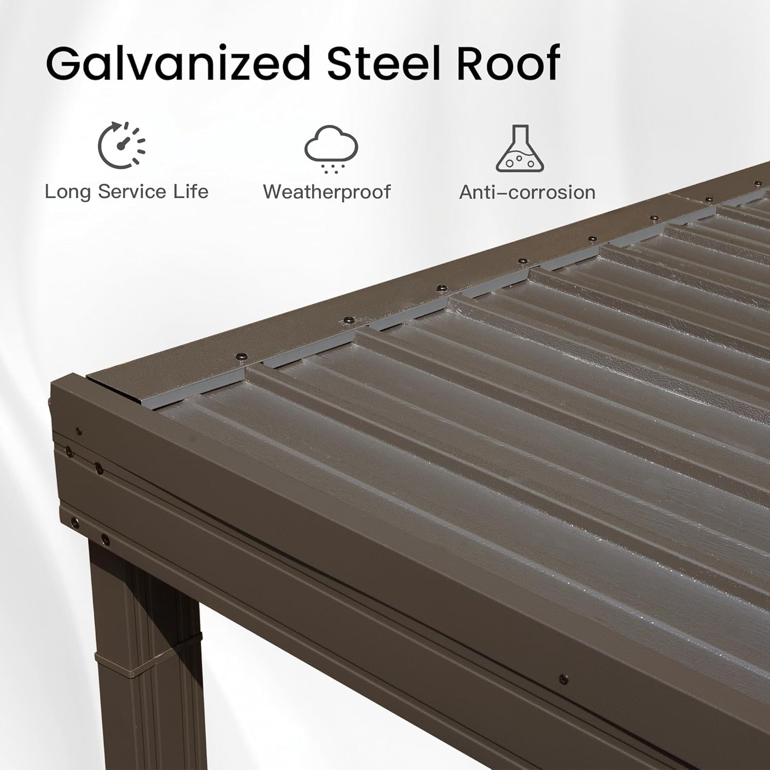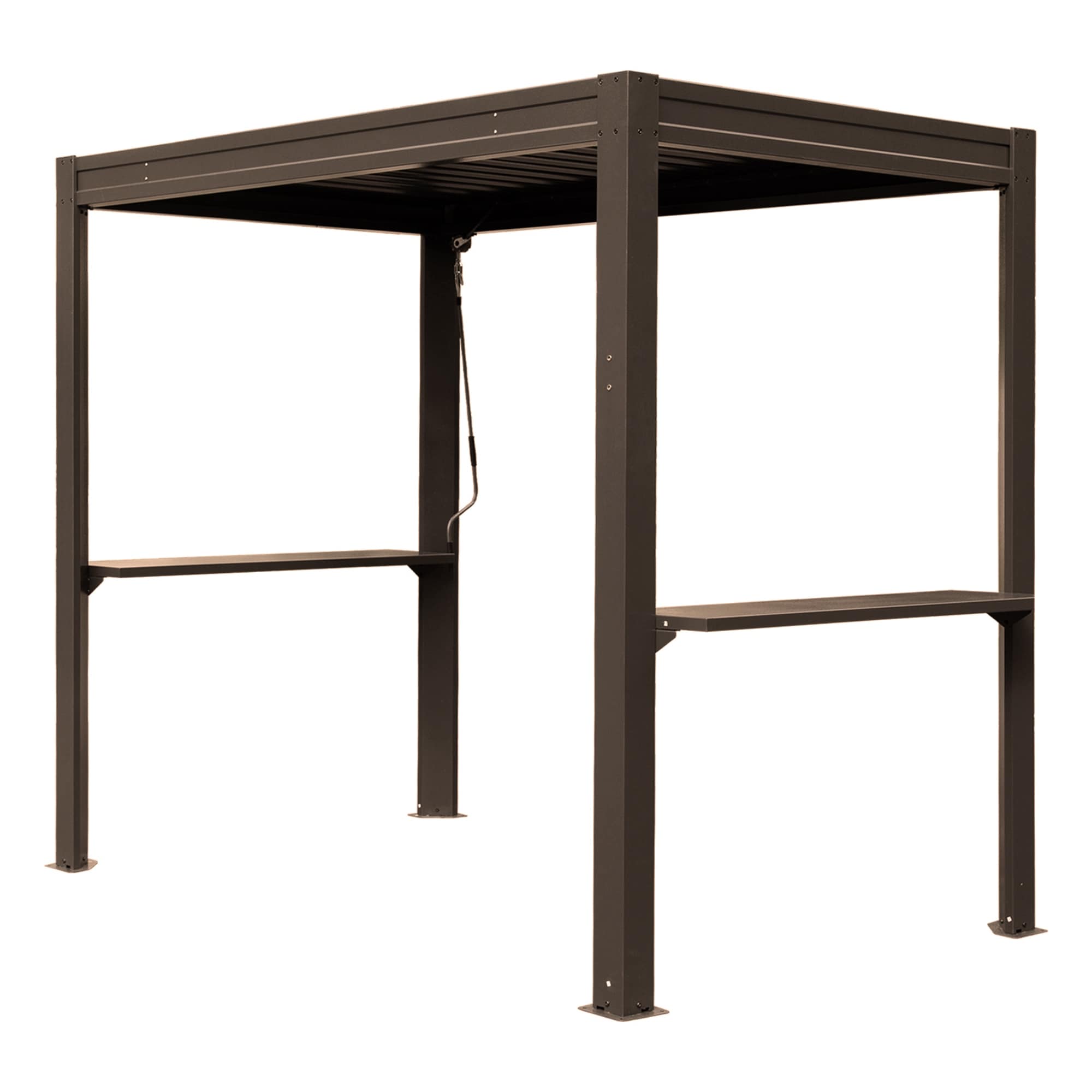 Wall Mounted Lean-To Hardtop Gazebo With Sloping Galvanized Steel Roof And Drainage System