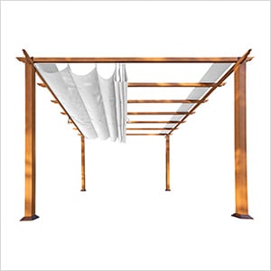 Paragon Outdoor 11 x 11 ft. Florence Soft Top Aluminum Pergola (Canadian Wood / Off White Canopy)